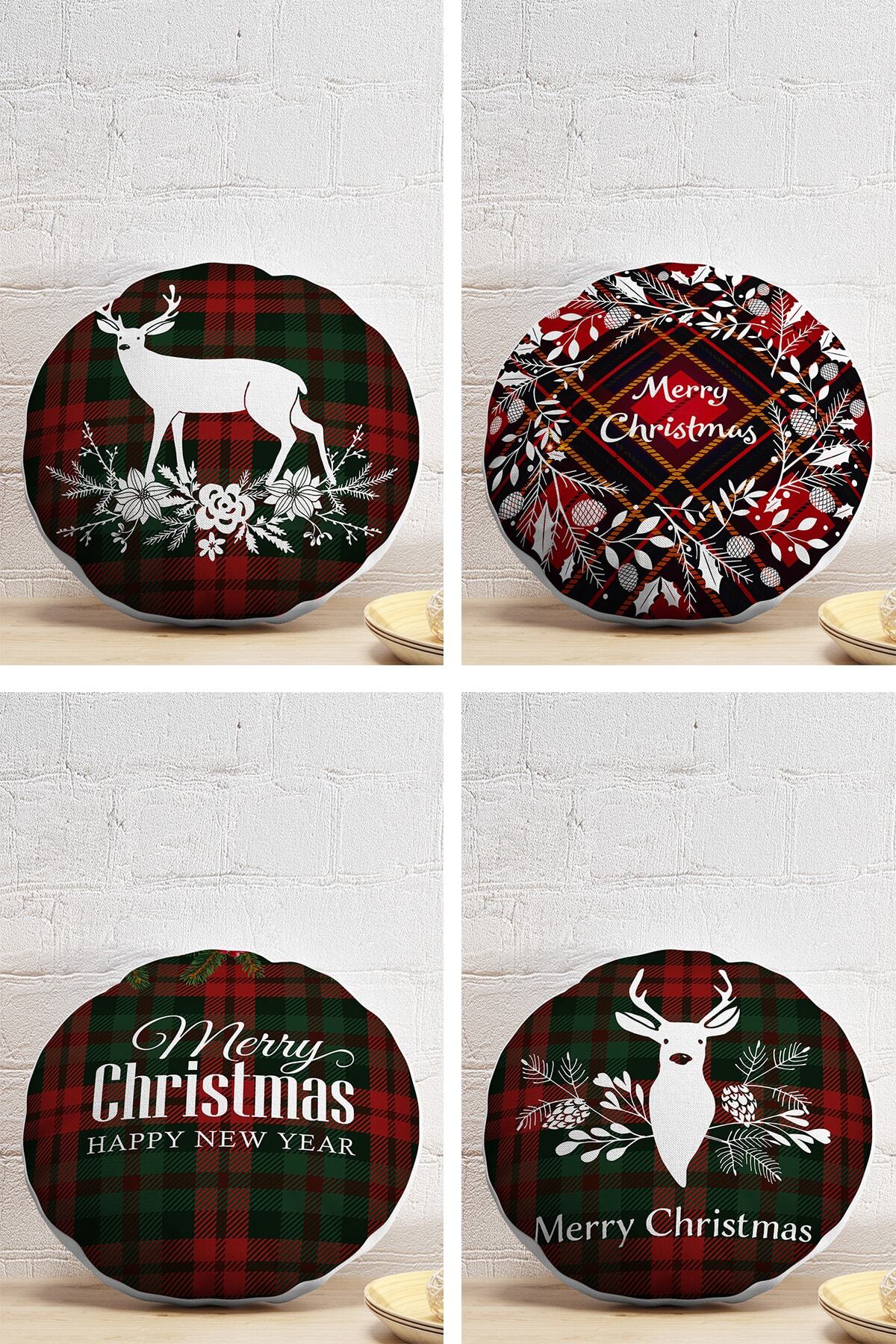 4'lü Ekose Zeminli Yılbaşı Desenli Yuvarlak Yastık Kırlent Kılıf Seti 4'lü Ekose Zeminli Yılbaşı Desenli Yuvarlak Yastık Kırlent Kılıf Seti YuvPtk4luSet236 Yuvarlak