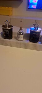 Dekoratif Özel Tasarım Gümüş Yıldız Başlıklı 2 'li Siyah Bardak Mum Seti Dekoratif Özel Tasarım Gümüş Yıldız Başlıklı 2 'li Siyah Bardak Mum Seti Fil2li تک سایز