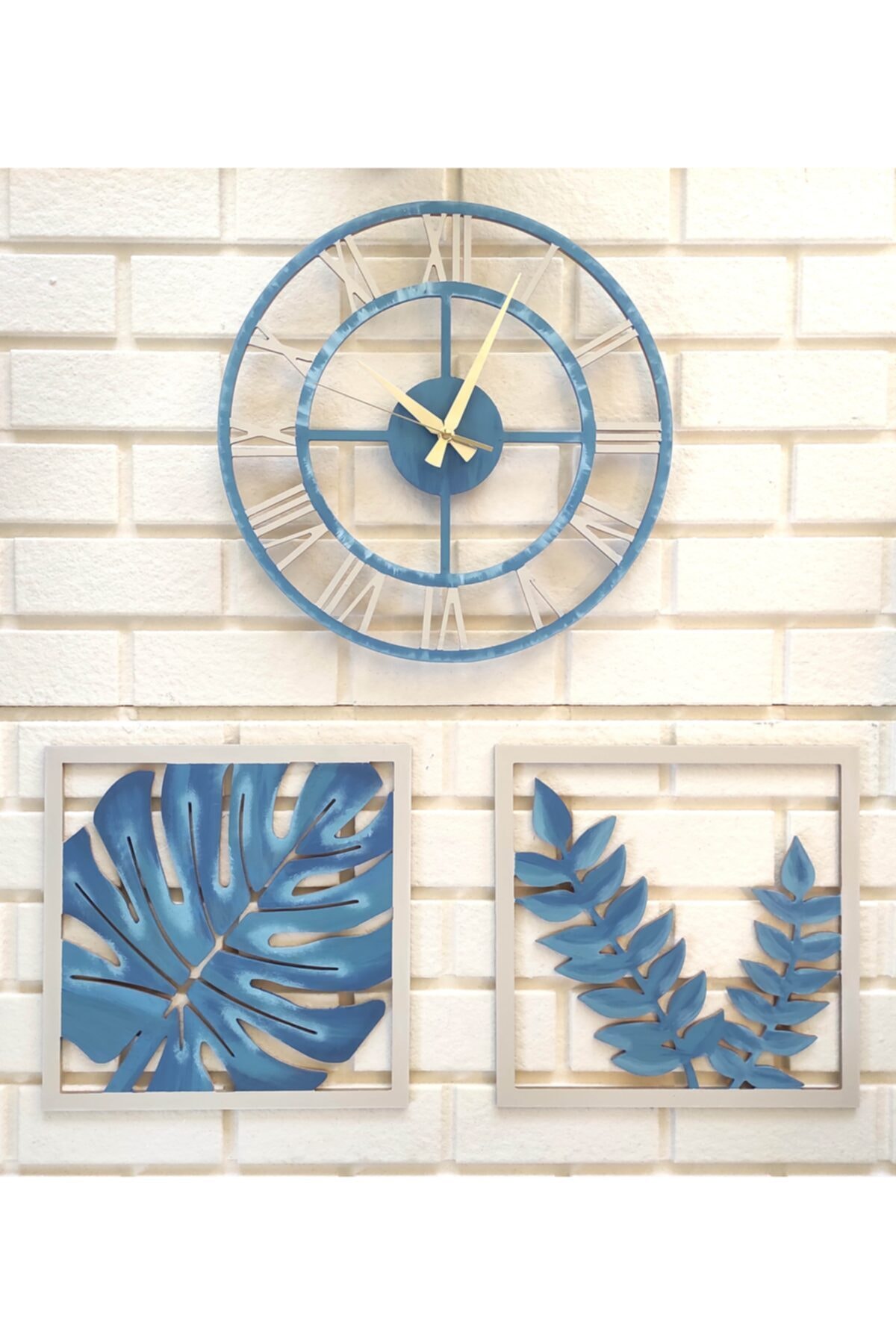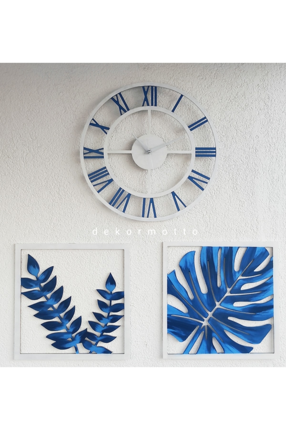Duvar Saati Dekorasyon Mavi Yapraklı Set Duvar Saati Dekorasyon Mavi Yapraklı Set TYC00306079099 تک سایز