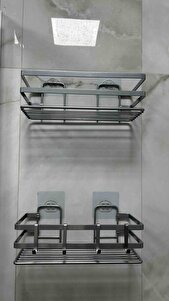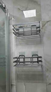 Yapışkanlı Kancalı Şampuanlık 2 Adet Banyo Rafı Silver St281h Yapışkanlı Kancalı Şampuanlık 2 Adet Banyo Rafı Silver St281h ST281H تک سایز