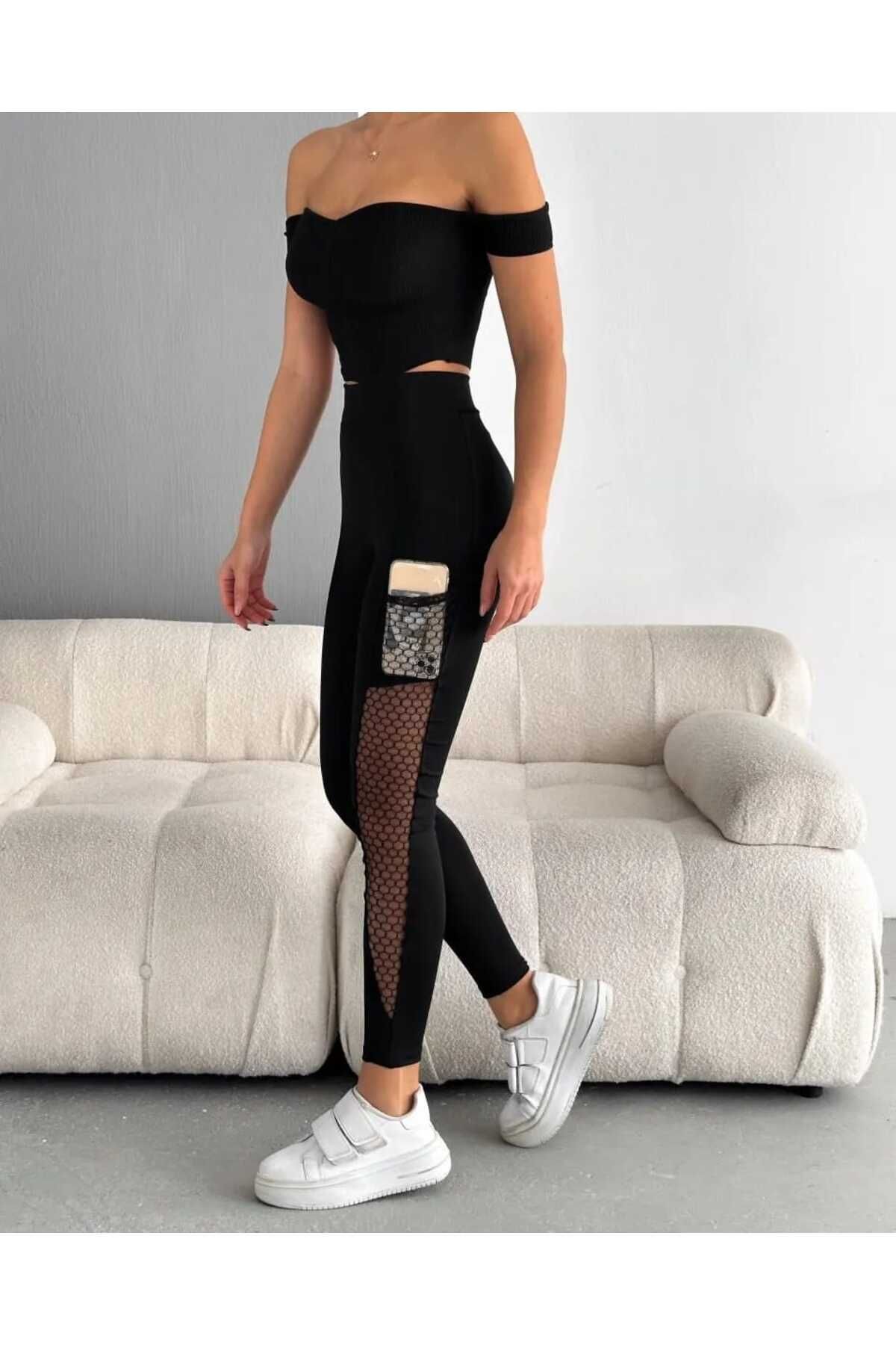 Siyah Dantel Detaylı Penye Elestan Yüksek Bel Uzun Tayt 4068 Siyah Dantel Detaylı Penye Elestan Yüksek Bel Uzun Tayt 4068 KO-04068Sİ XL
