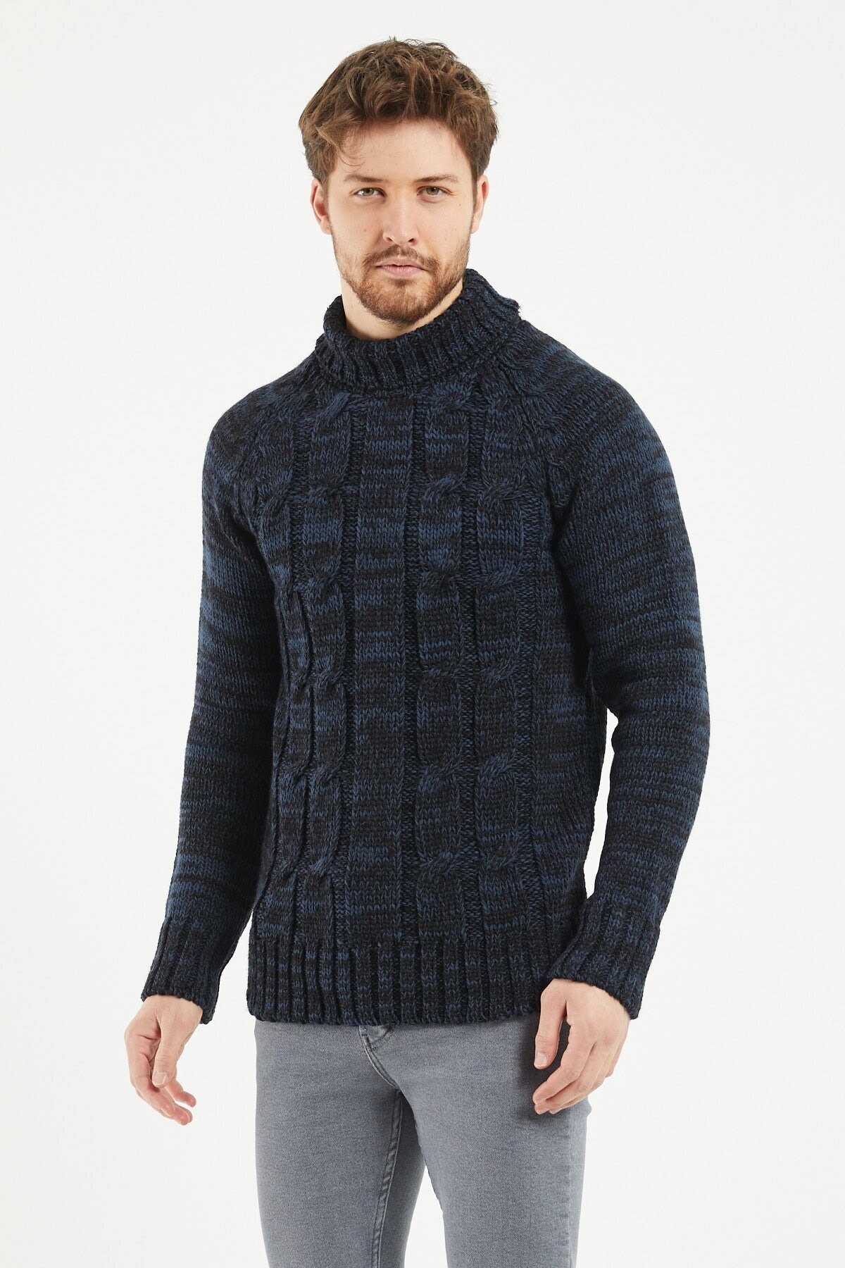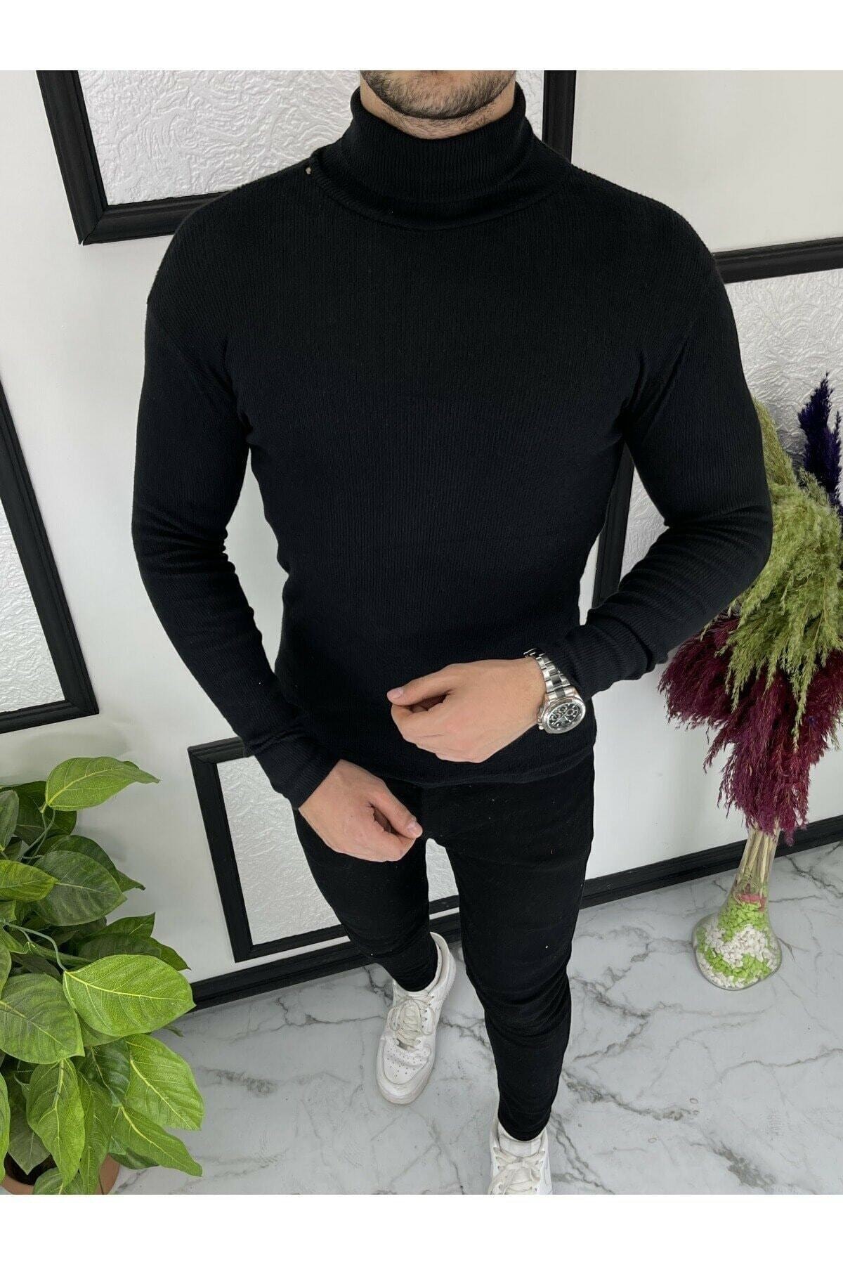 Erkek Siyah Boğazlı Örgülü Triko Kazak Erkek Siyah Boğazlı Örgülü Triko Kazak CTKZK001 M