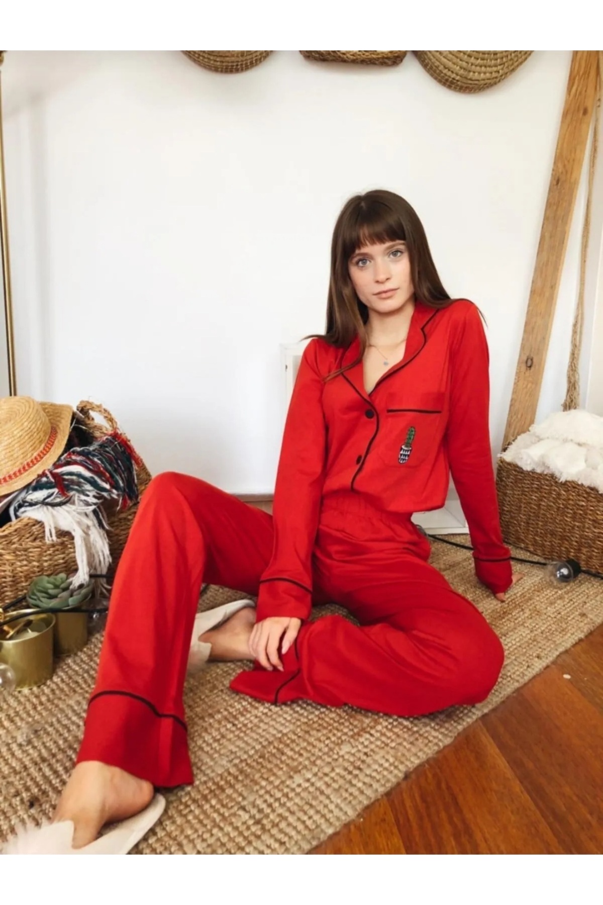 Mercan Rengi Zebra Nakışlı Pijama Takımı Mercan Rengi Zebra Nakışlı Pijama Takımı HQU1234567 XL