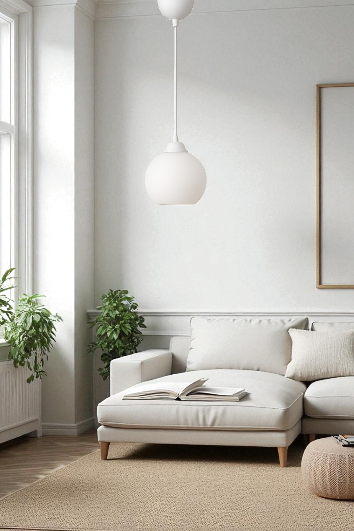 Eva Aydınlatma Modern Tekli Cam Sarkıt Mat Beyaz Tekli Avize 23x23x27 Eva Aydınlatma Modern Tekli Cam Sarkıt Mat Beyaz Tekli Avize 23x23x27 Bella تک سایز