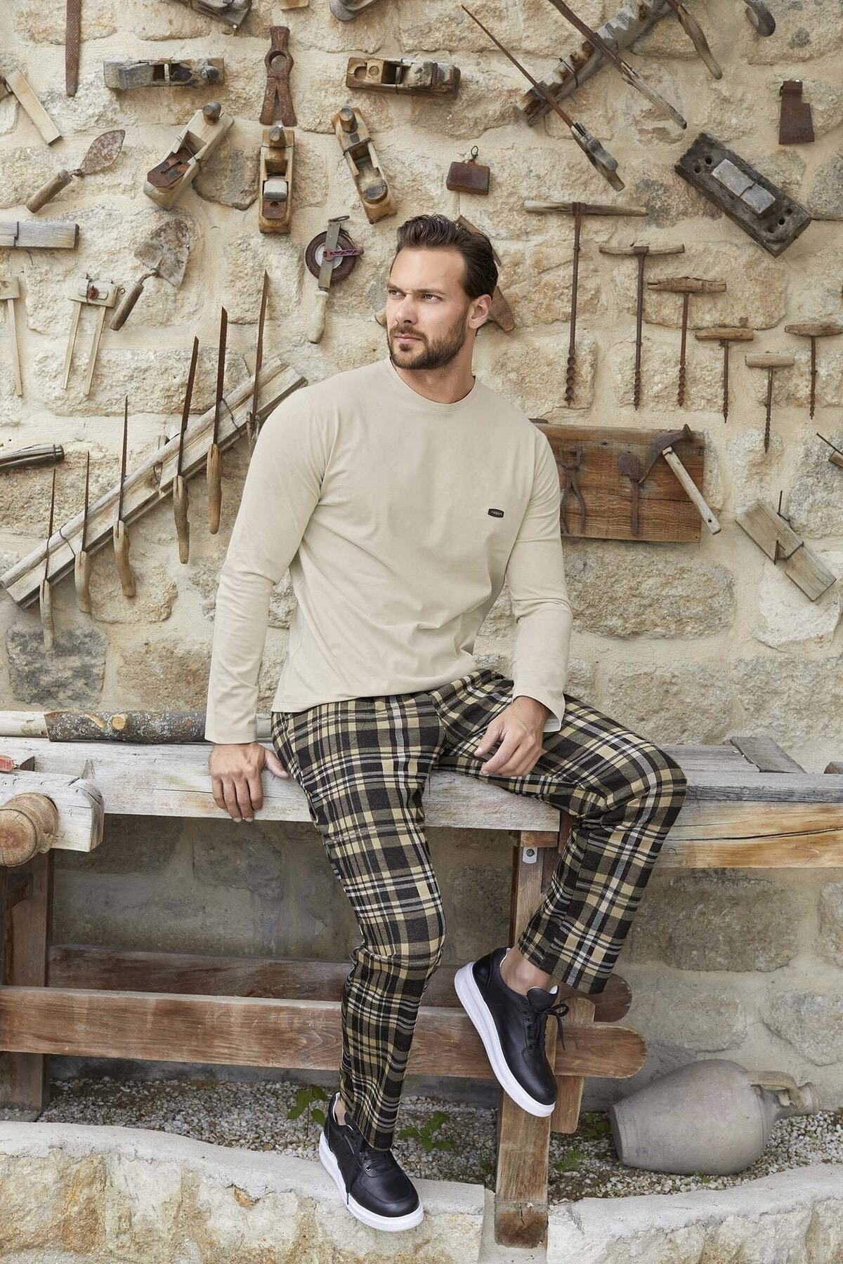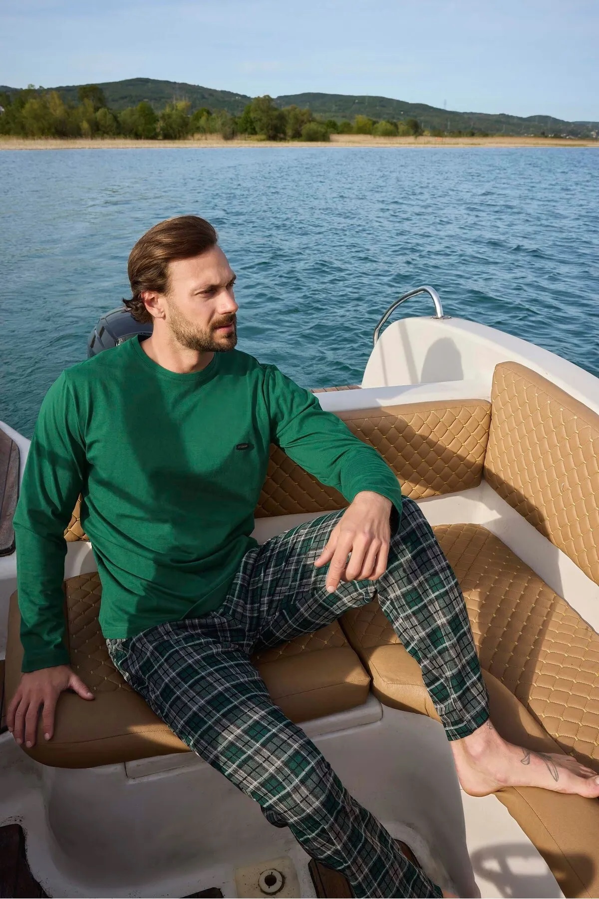 Erkek Jakarlı Altı Ekoseli Üstü Düz Turkuaz Pijama Takımı Erkek Jakarlı Altı Ekoseli Üstü Düz Turkuaz Pijama Takımı PTEE03937 XL