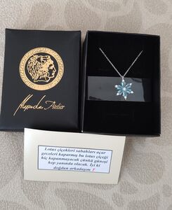 Lotus Çiçeği Kolye 45 cm Akuamarin Taşlı Rodyum Kaplama 925 Silver Lotus Çiçeği Kolye 45 cm Akuamarin Taşlı Rodyum Kaplama 925 Silver AJ059 45 cm