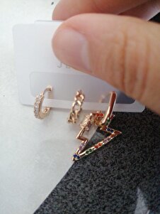 Kadın Altın Kaplama Kararmaz Şimşek Figürlü 3'lü Zirkon Set Küpe Kadın Altın Kaplama Kararmaz Şimşek Figürlü 3'lü Zirkon Set Küpe ZYNA-0992 M
