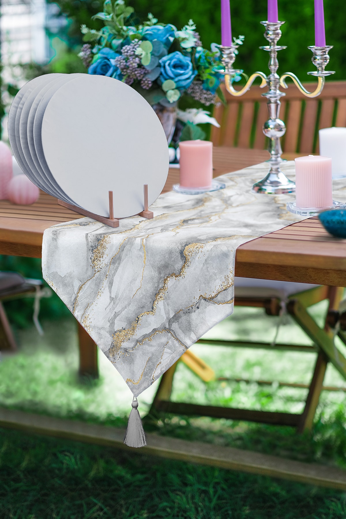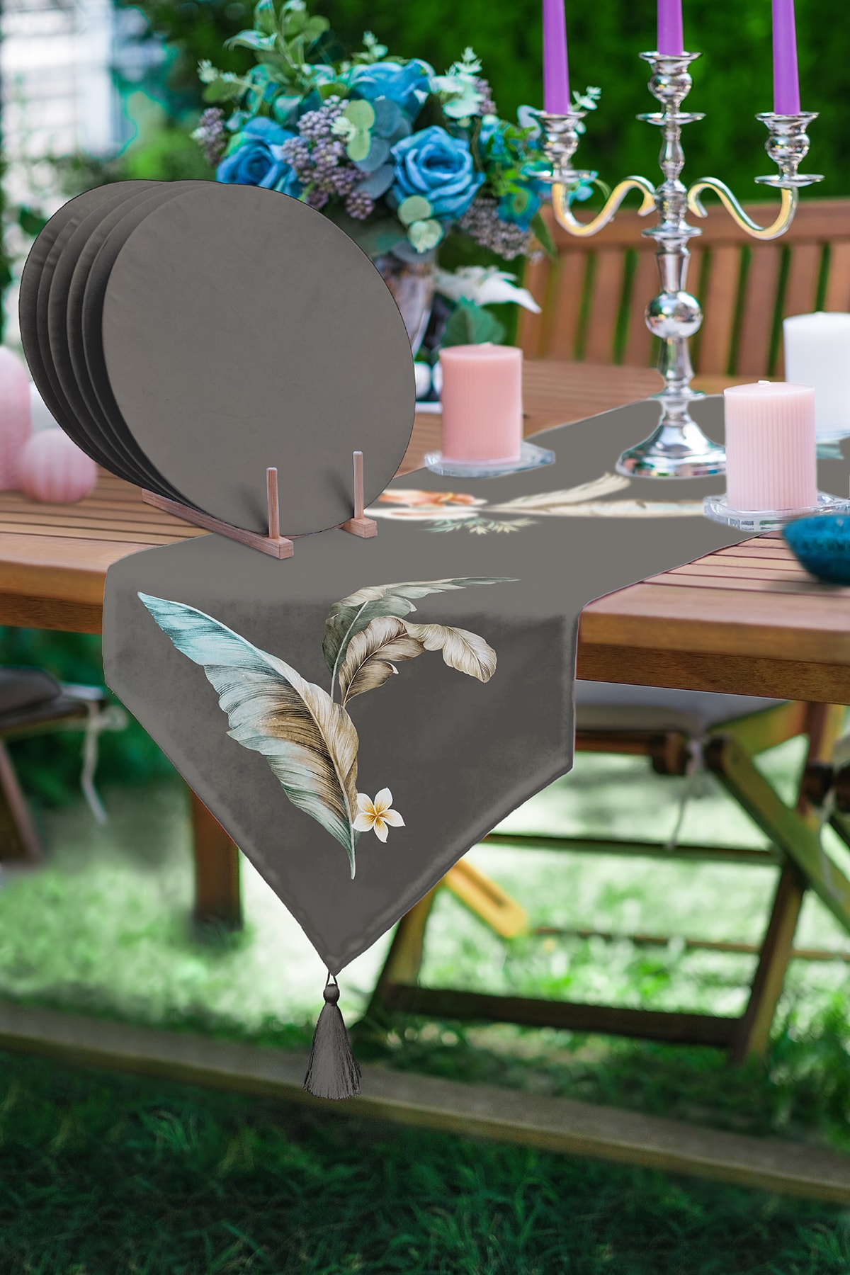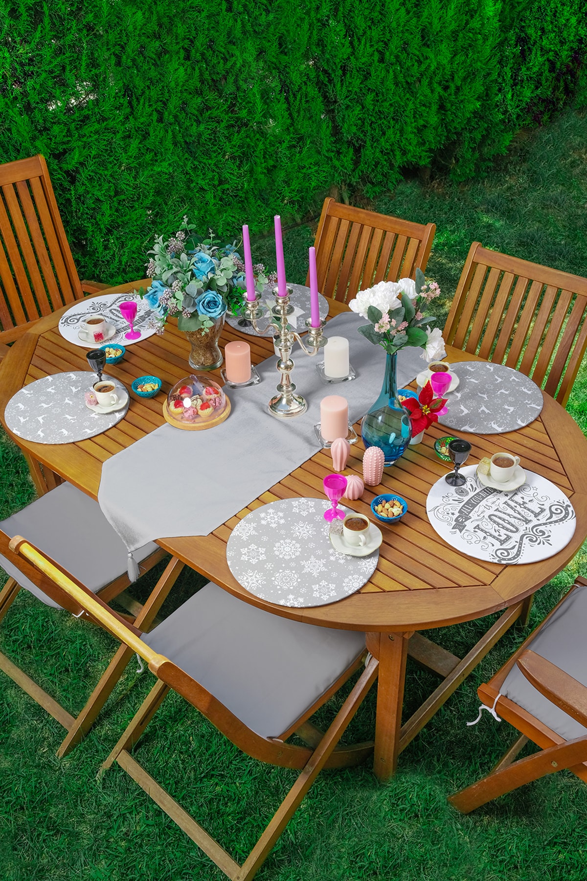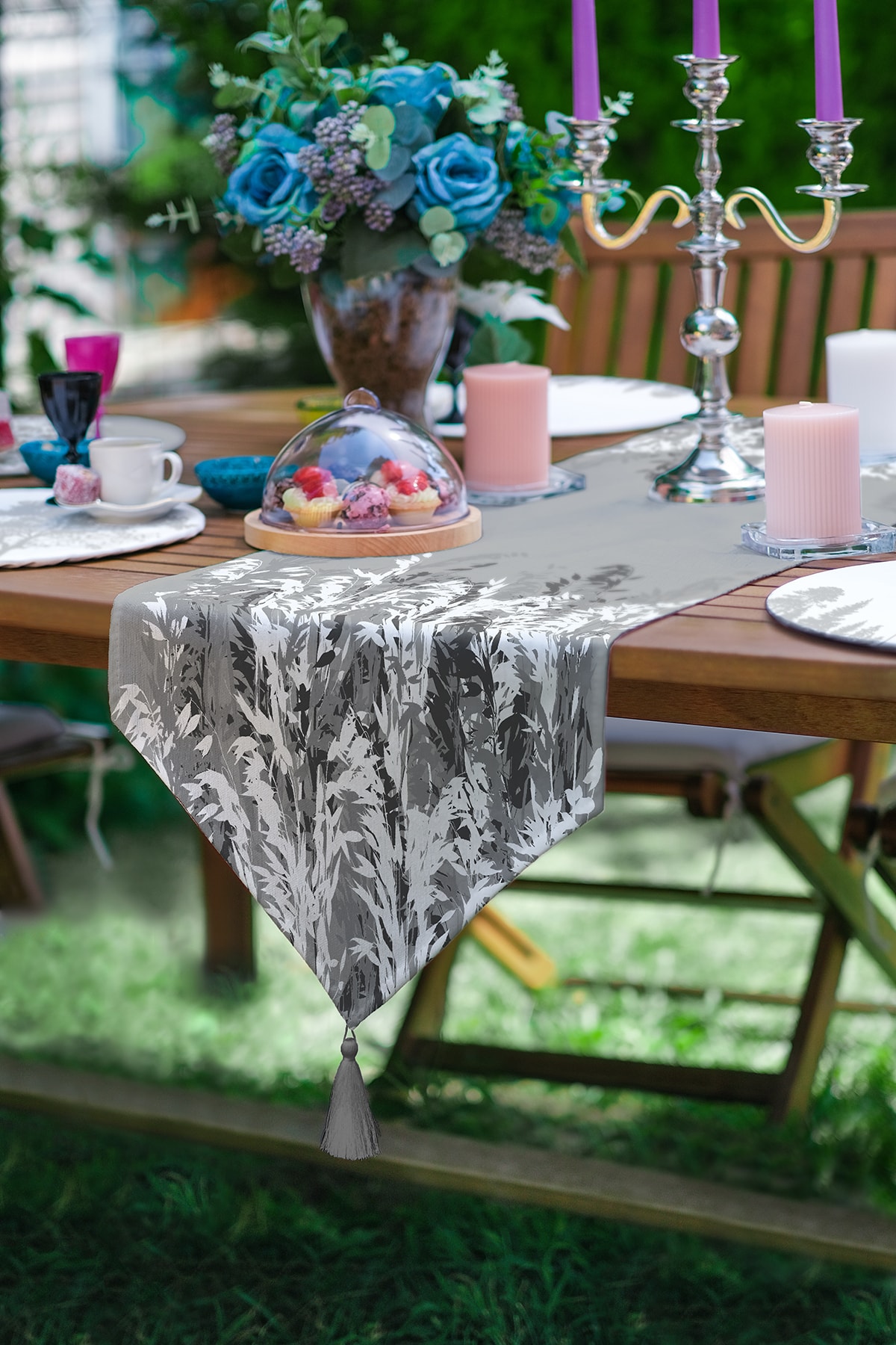 Gri Zemin Kar Taneli Üçgen Püsküllü Runner 1 Adet & 6 Adet Gri Renkli Supla Gri Zemin Kar Taneli Üçgen Püsküllü Runner 1 Adet & 6 Adet Gri Renkli Supla SuplaRunner-DuzRenkSet-3563 تک سایز