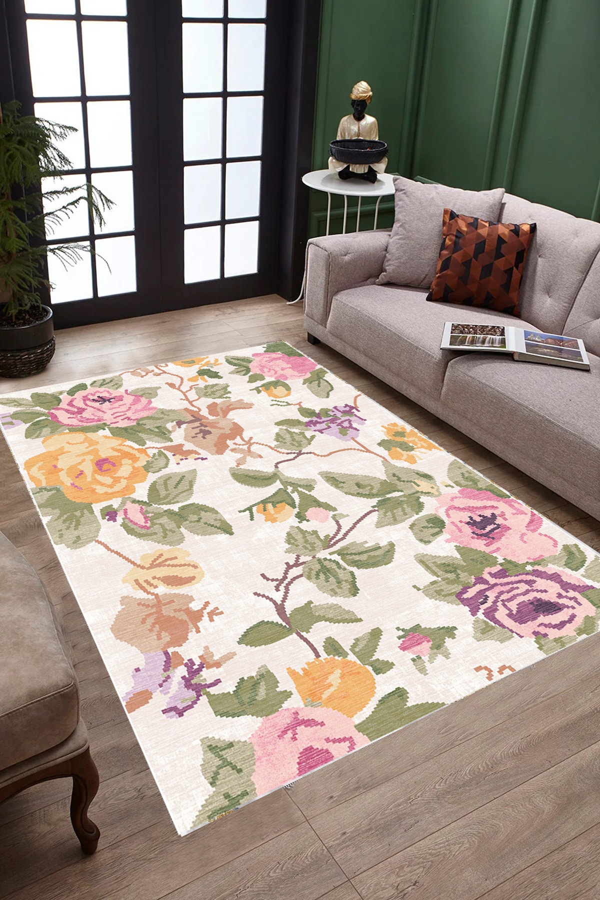 Çiçek Desenli Renk Geçişli Dijital Baskı Yıkanabilir Kaymaz Taban Vintage Salon Halı Ve Yolluk Çiçek Desenli Renk Geçişli Dijital Baskı Yıkanabilir Kaymaz Taban Vintage Salon Halı Ve Yolluk GKT1003 160 x 230