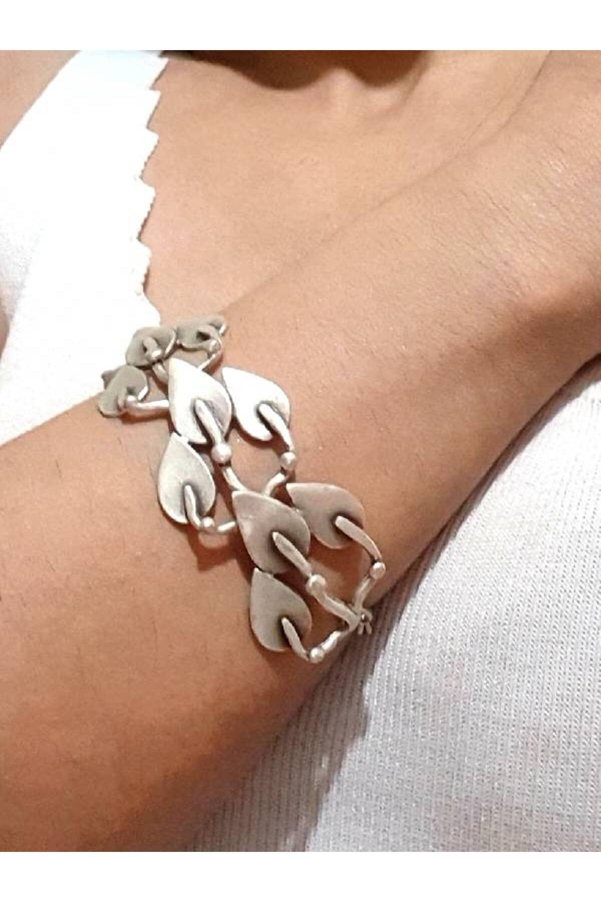 Gümüş Kaplama Antik Çelik Kadın Yaprak Detaylı Bileklik Gümüş Kaplama Antik Çelik Kadın Yaprak Detaylı Bileklik ÇB021 S