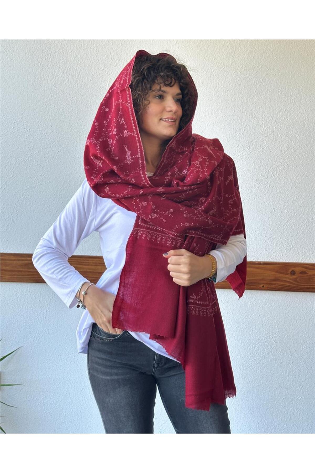 Bordo Simli Sarmal Desenli Ipek Şal Bordo Simli Sarmal Desenli Ipek Şal 0522602619300 70 x 200
