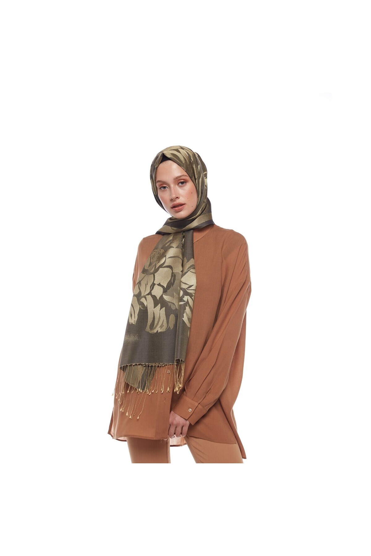 Antrasit Nev Bahçe Desenli Ipek Şal Antrasit Nev Bahçe Desenli Ipek Şal 0407500301300 70 x 200