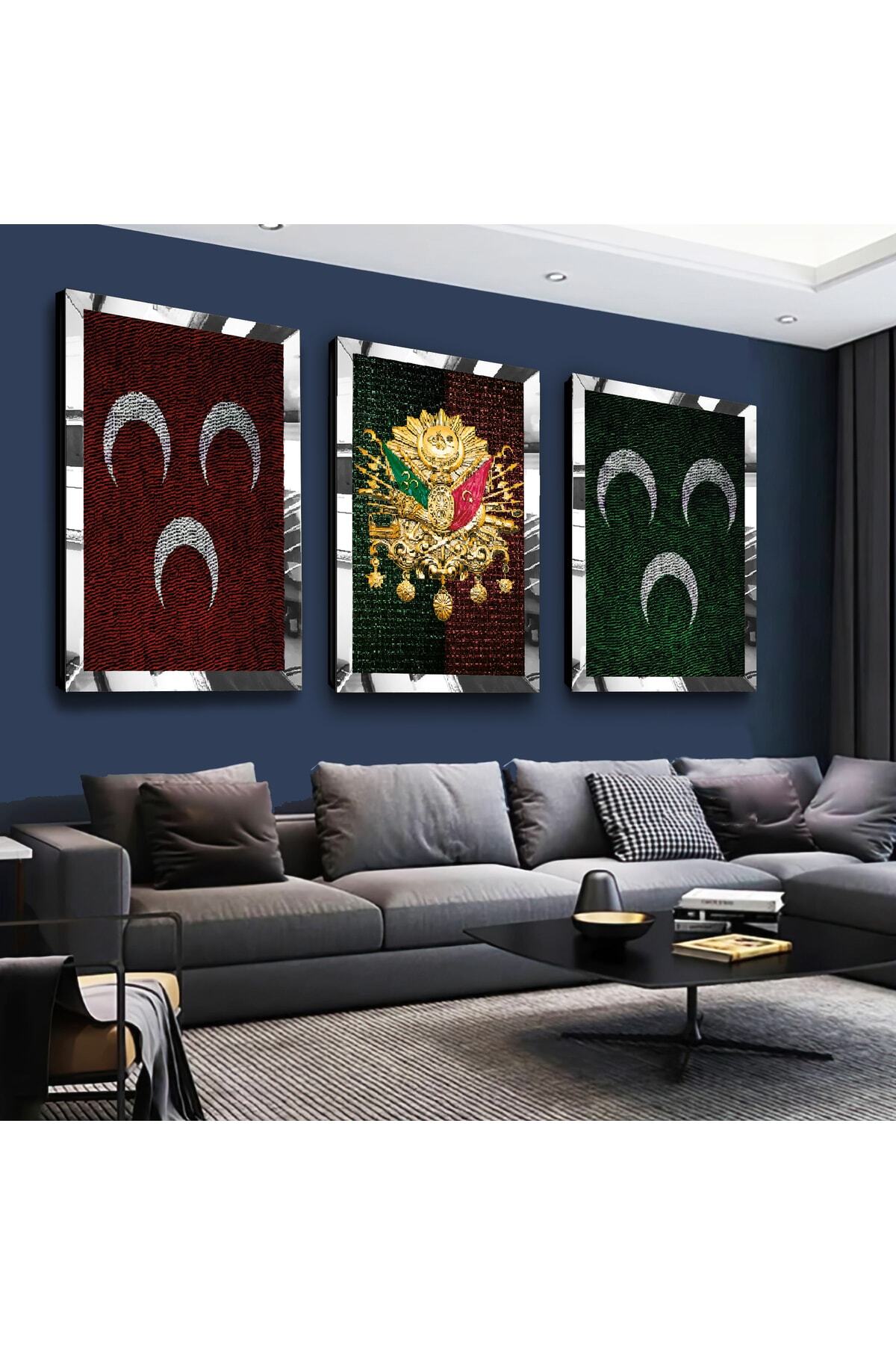 Gold Aynalı Pleksi Çerçeveli 3hilal Ve Osmanlı Tuğrası Üçlü Mdf Tablo Seti Gold Aynalı Pleksi Çerçeveli 3hilal Ve Osmanlı Tuğrası Üçlü Mdf Tablo Seti 3MPTMGP32 50 x 70