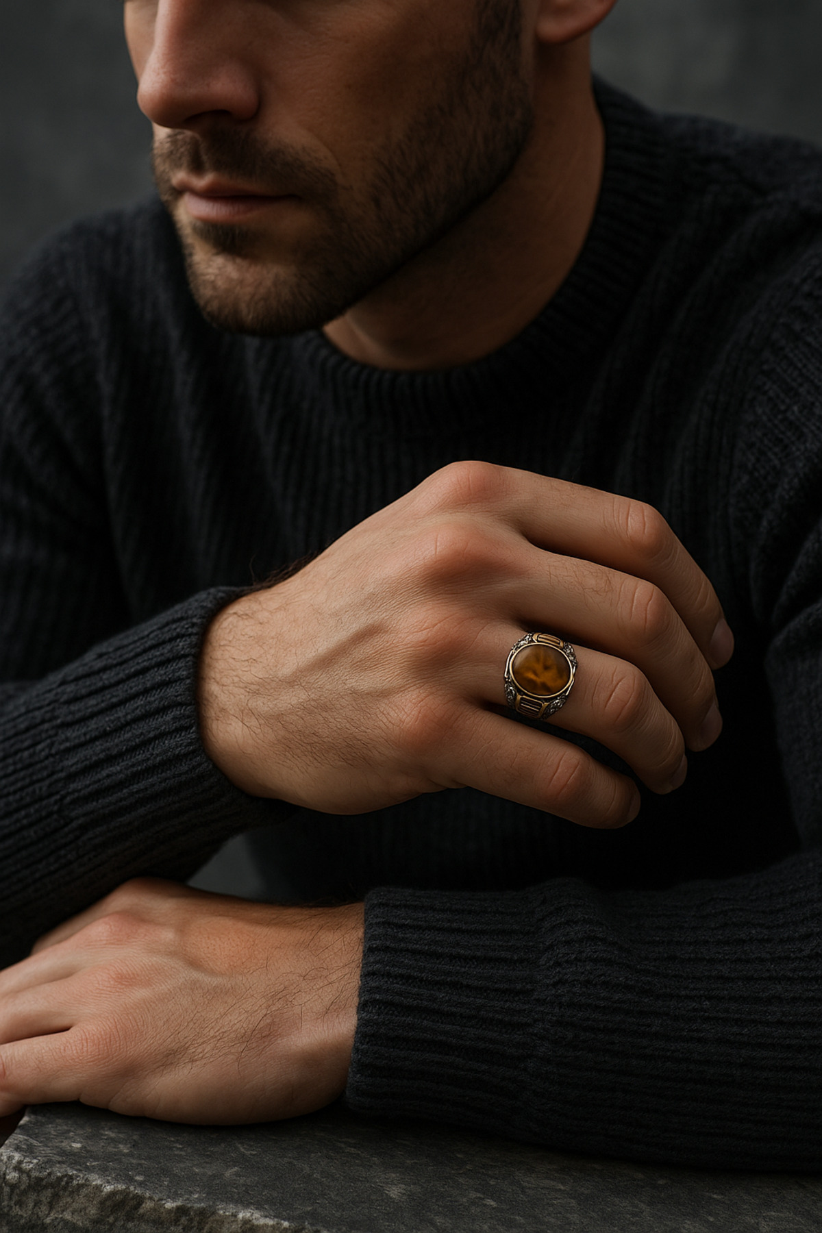 Doğal Kaplan Gözü Taş El Üretimi 925 Gümüş Yüzük Doğal Kaplan Gözü Taş El Üretimi 925 Gümüş Yüzük MAOY0379 20