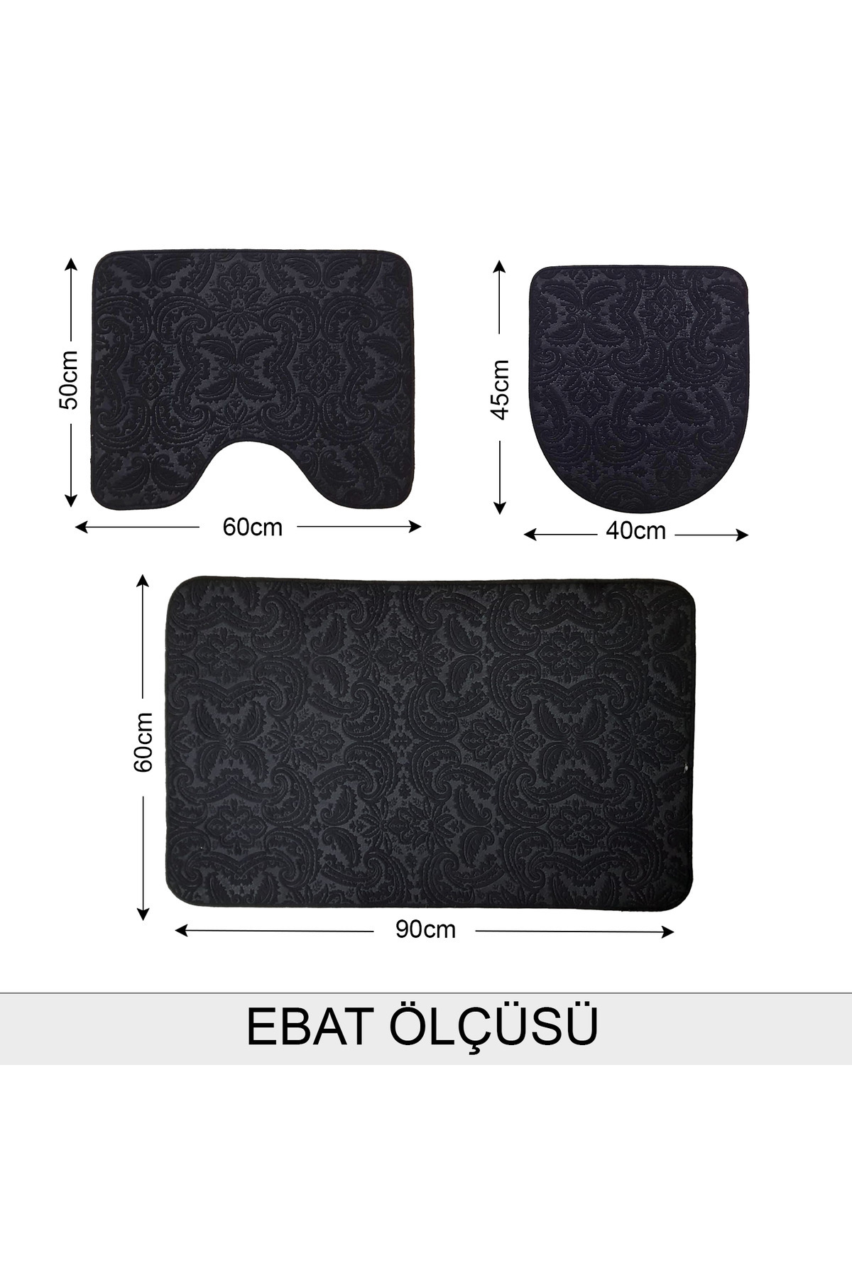 Siyah Ultrasoft Desenli 3'lü Klozet Takımı Banyo Halısı Paspası Seti Siyah Ultrasoft Desenli 3'lü Klozet Takımı Banyo Halısı Paspası Seti UltSoft تک سایز