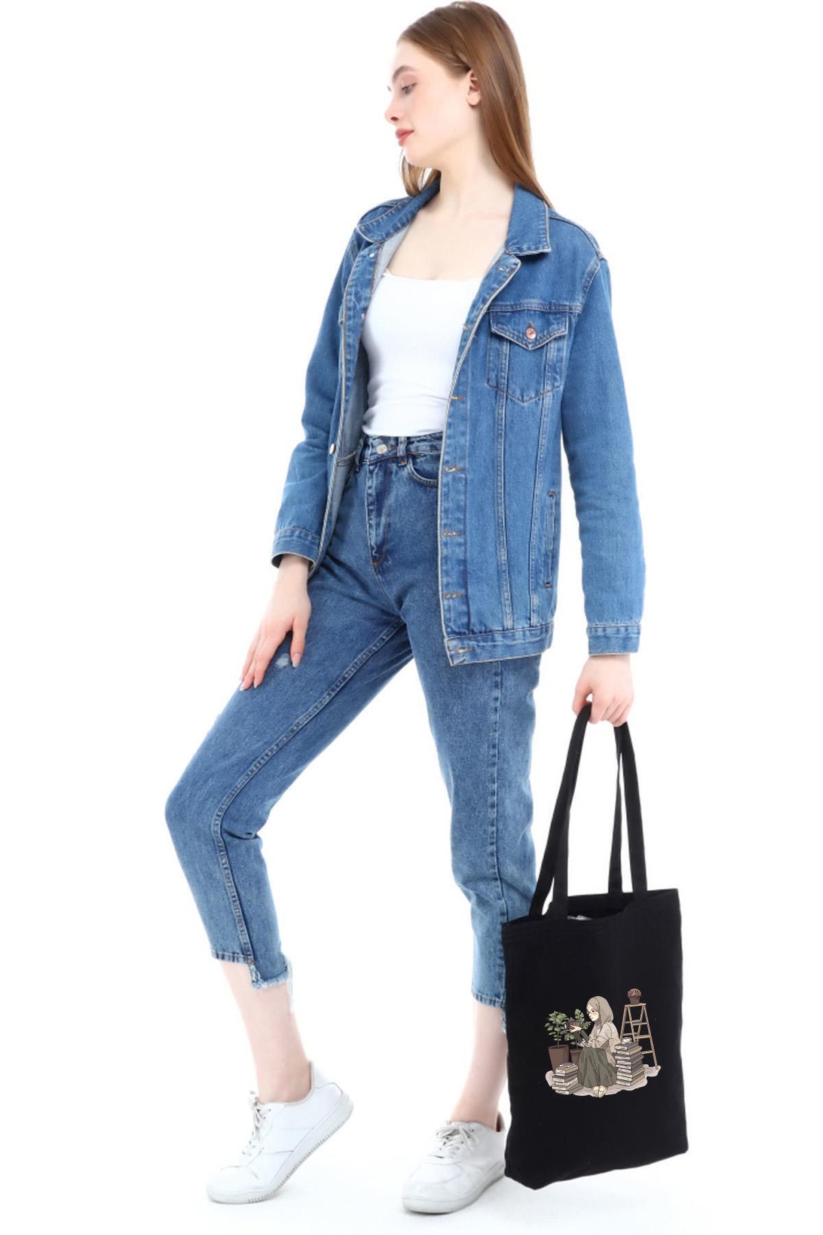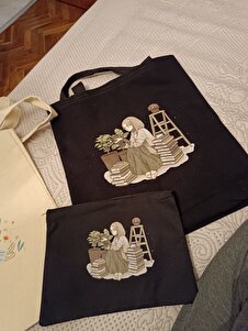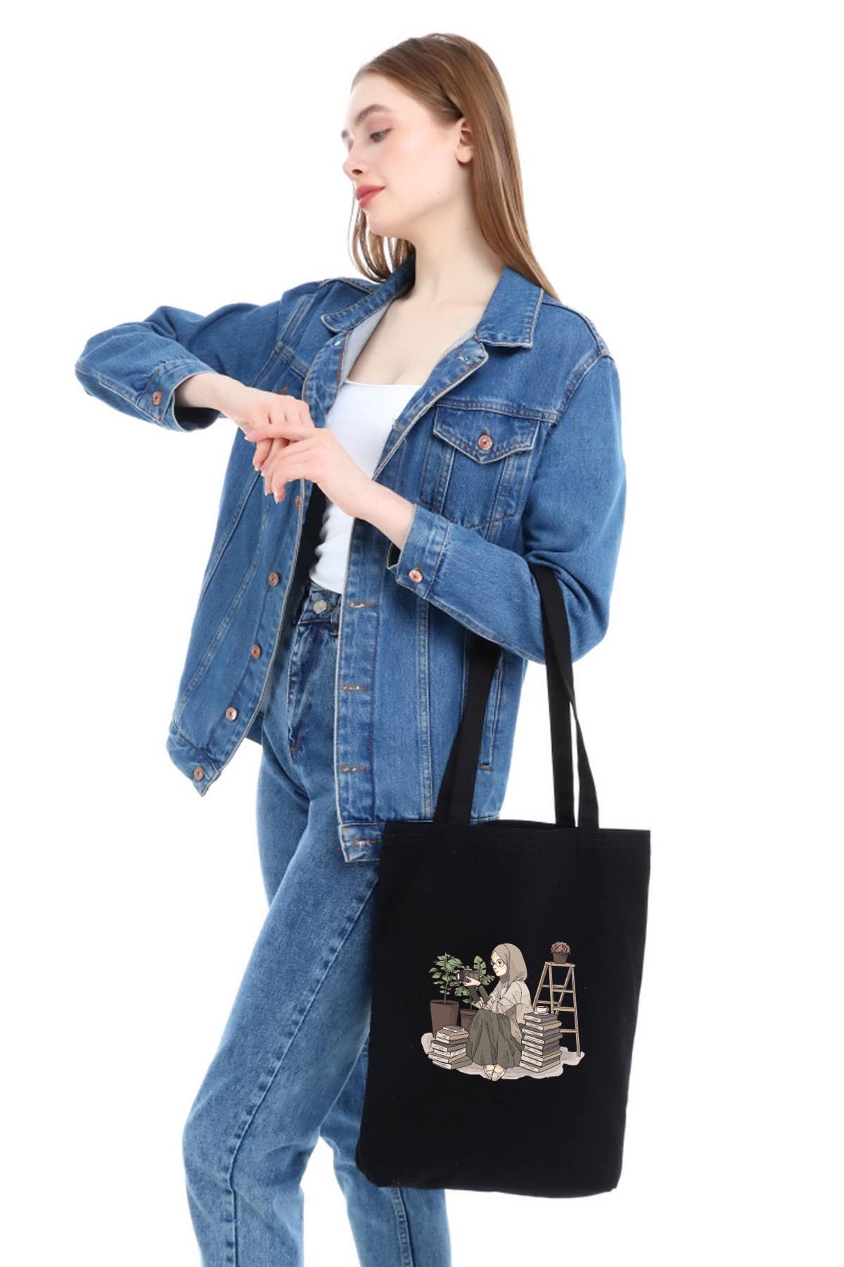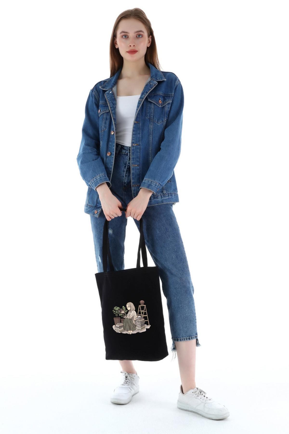 Siyah Kanvas Fotoğrafçı Kız Baskılı Çanta Siyah Kanvas Fotoğrafçı Kız Baskılı Çanta 1457 Standart