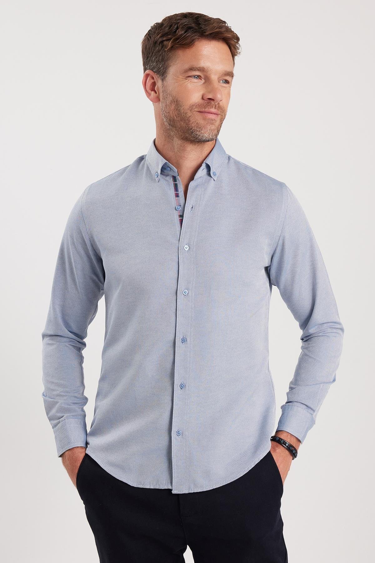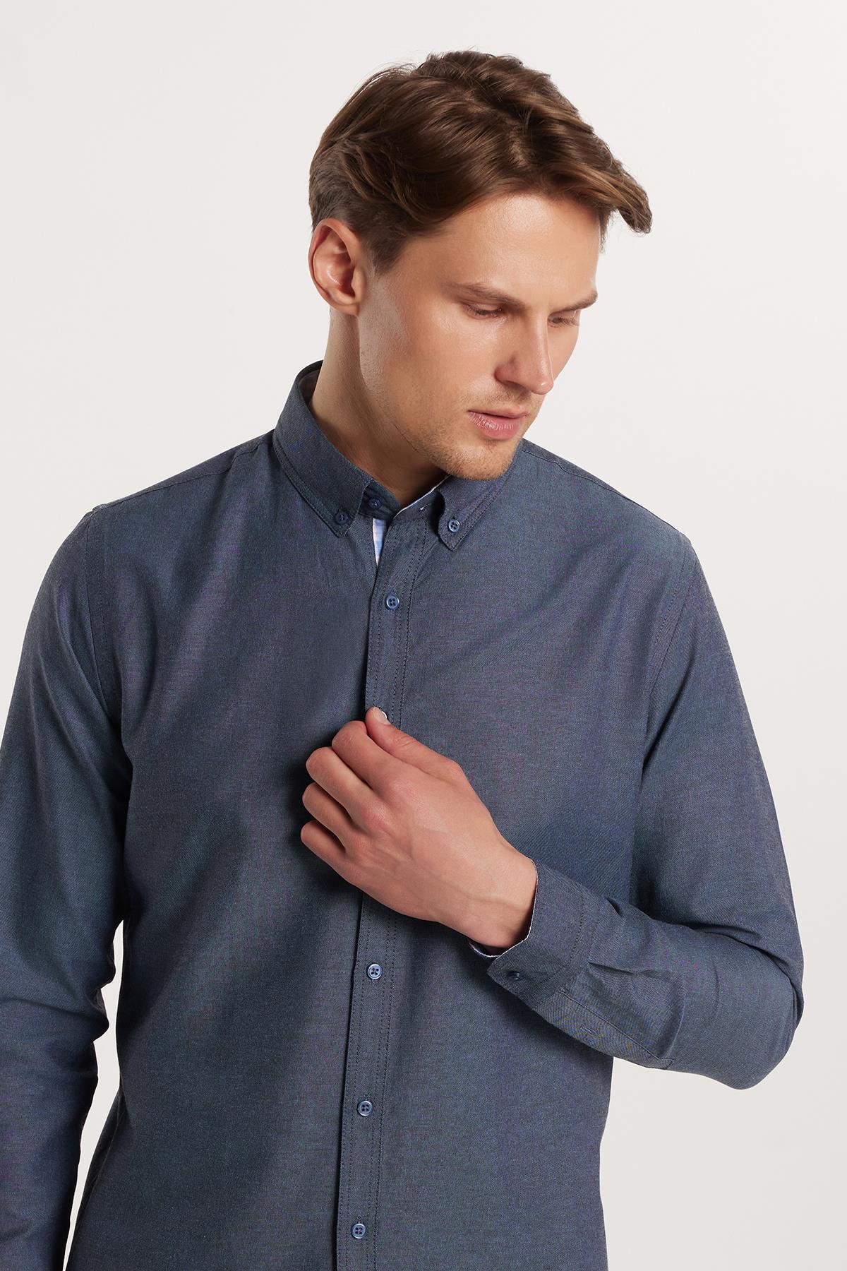 Erkek Slim Fit Dar Kesim Uzun Kollu Pamuklu Kolay Ütü Armürlü Lacivert Gömlek Erkek Slim Fit Dar Kesim Uzun Kollu Pamuklu Kolay Ütü Armürlü Lacivert Gömlek DR17124-410-1 2XL