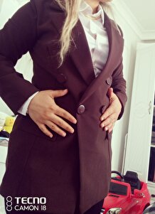 Kadın Düğme Detaylı Uzun Kol Şık Ofis Süs Cep Kapaklı Kumaş Blazer Ceket-Kahve Kadın Düğme Detaylı Uzun Kol Şık Ofis Süs Cep Kapaklı Kumaş Blazer Ceket-Kahve 37013 44