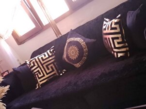 Siyah Zemin Labirent Desen Altın Varak Kırlent Kılıfı Siyah Zemin Labirent Desen Altın Varak Kırlent Kılıfı SYH LBRNT ALTNVRK تک سایز