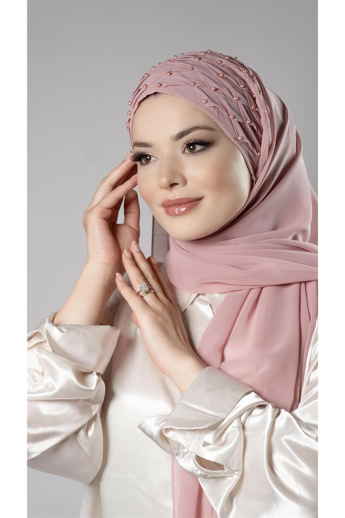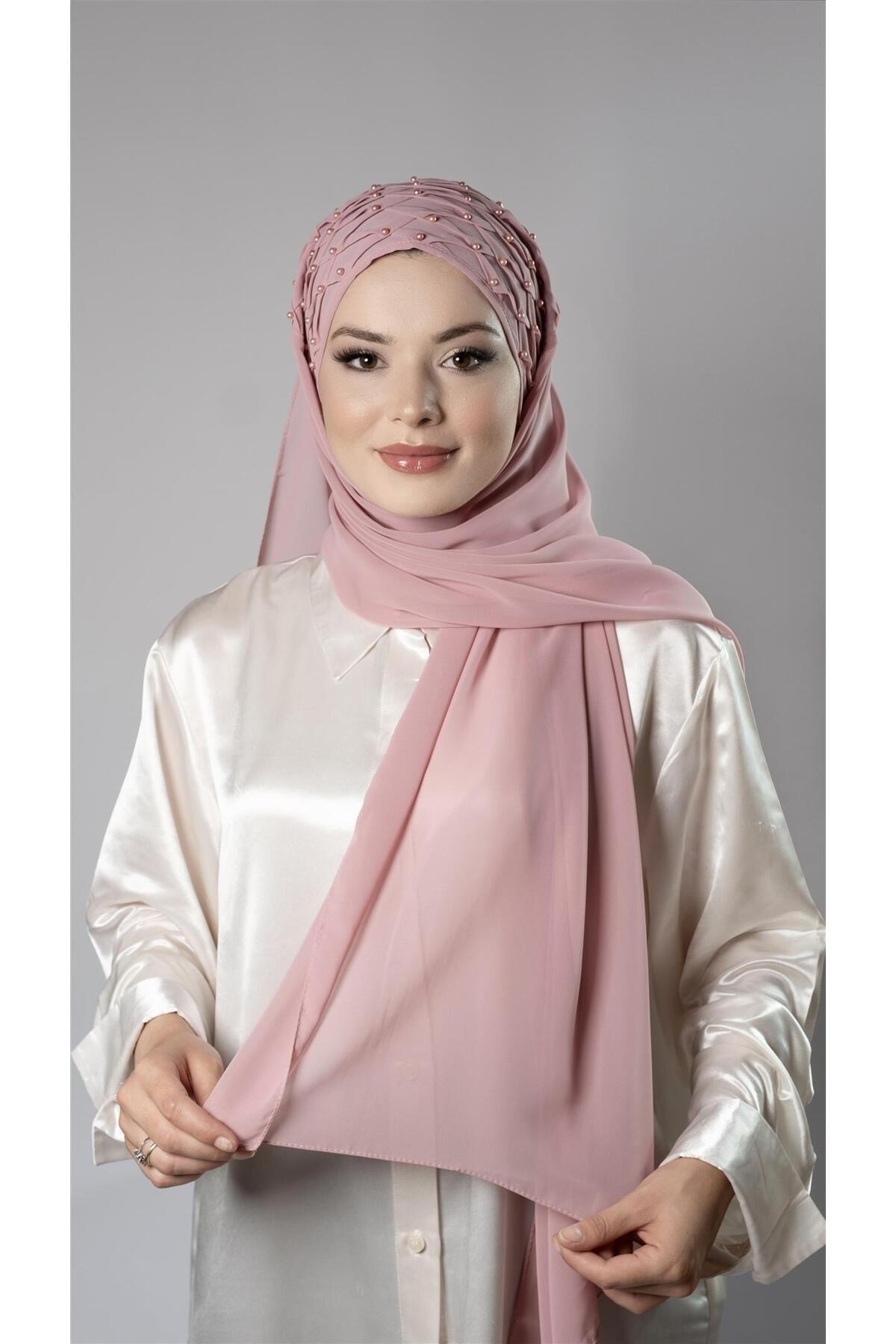 Pudra Arkadan Bağlamalı Şal Şifon Incili 1901_06 Pudra Arkadan Bağlamalı Şal Şifon Incili 1901_06 تک سایز