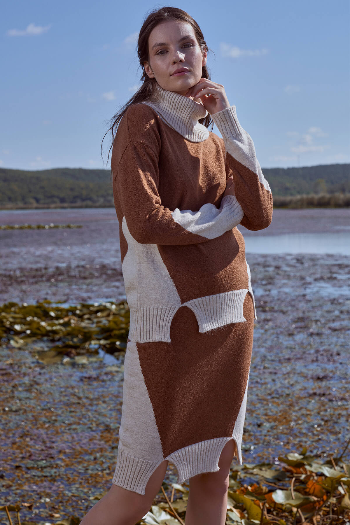 Tam Balıkçı Kazak Etek Triko Takım - Kemik - Taba Tam Balıkçı Kazak Etek Triko Takım - Kemik - Taba 21K2138-32376.0001-R0328 M