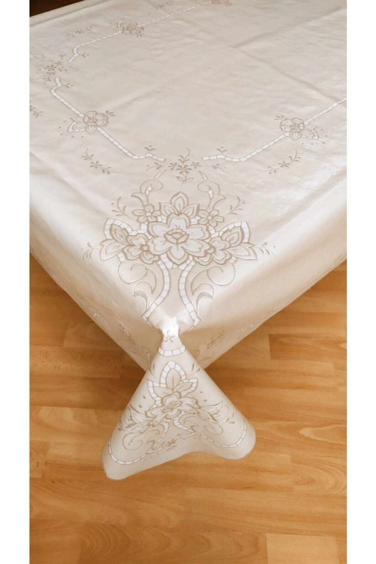 Kumaş Görünümlü Silinebilir Dantelli Pvc Masa Örtüsü Kumaş Görünümlü Silinebilir Dantelli Pvc Masa Örtüsü Meiwa004 135 x 176