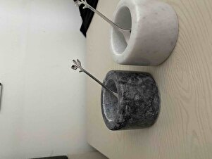 Mermer Tuzluk Ve Biberlik El Yapımı Beyaz Ve Gri Renkli Baharatlık Gümüş Kaşık Mermer Tuzluk Ve Biberlik El Yapımı Beyaz Ve Gri Renkli Baharatlık Gümüş Kaşık TYC00201832329 تک سایز
