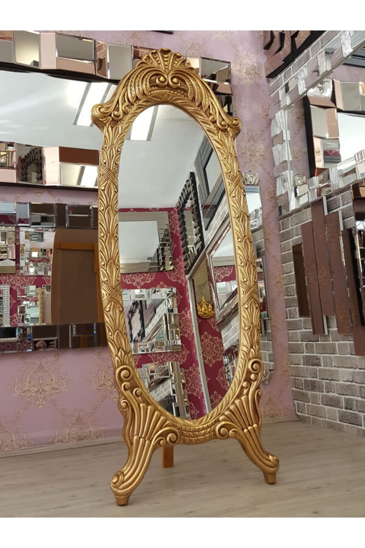 Ayna Çerçeveli Model Altın Renk Dekoratif Modern Ayaklı Boy Aynası Ayna Çerçeveli Model Altın Renk Dekoratif Modern Ayaklı Boy Aynası HPS-1696 تک سایز