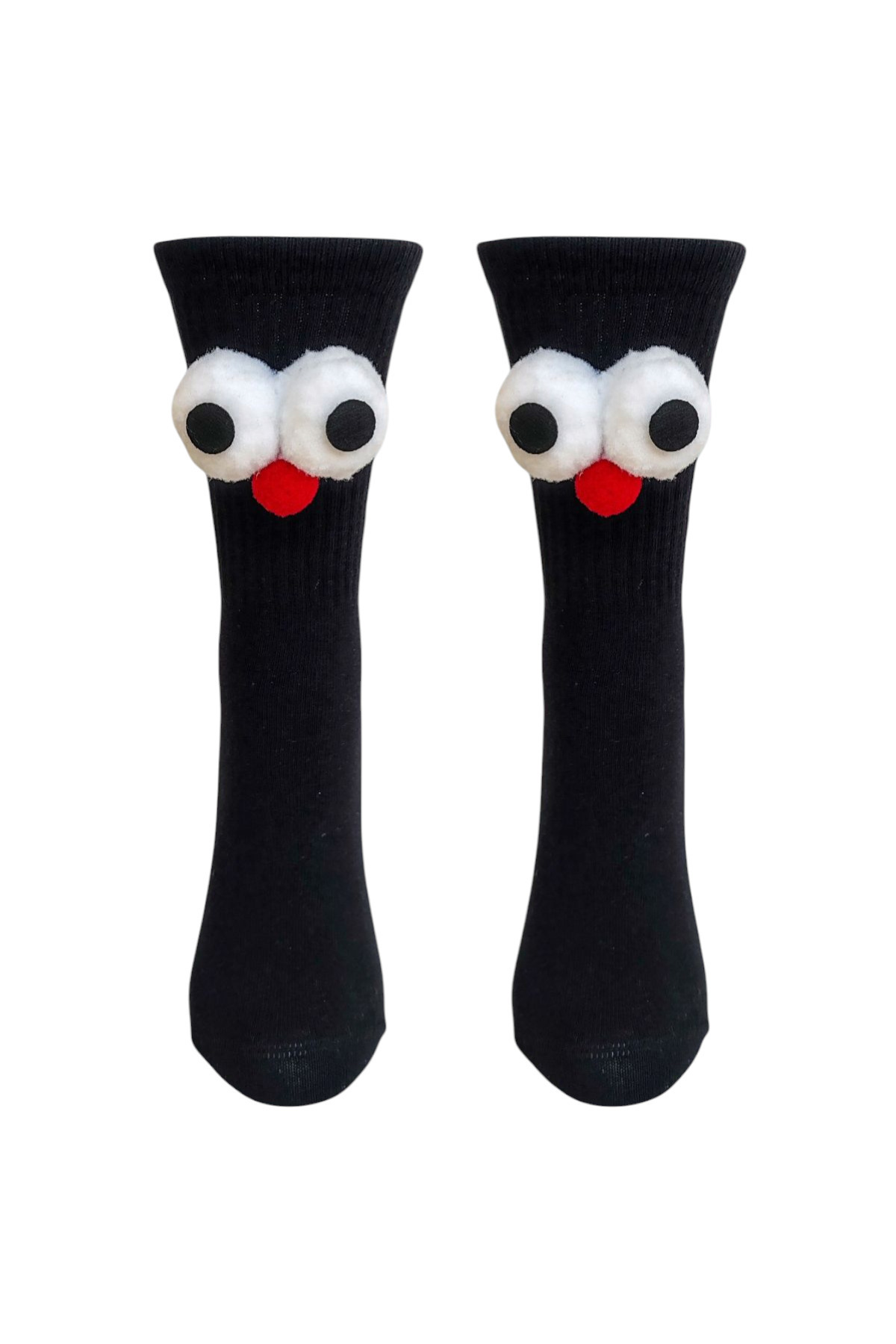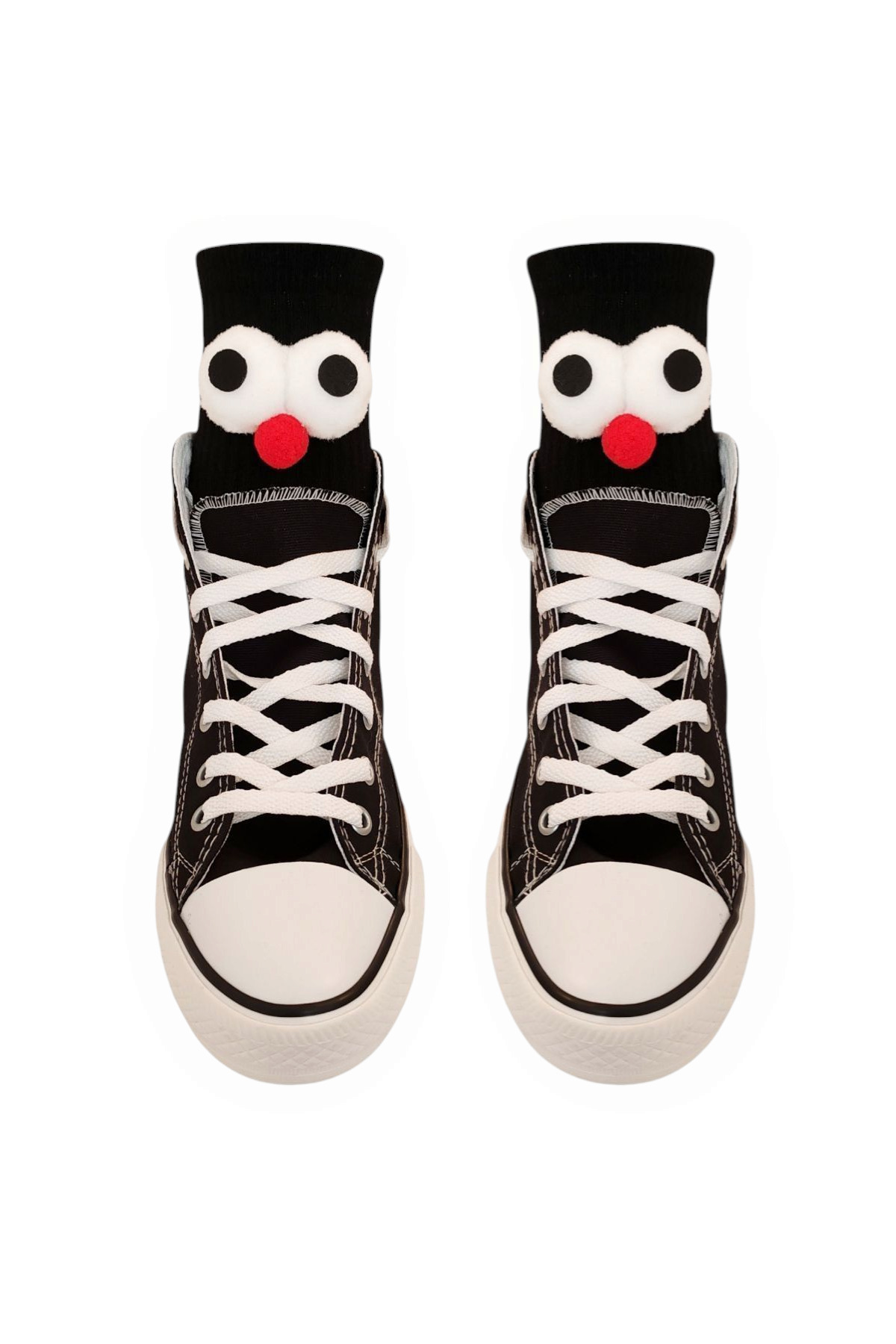1 Çift Siyah Patlak Gözlü Komik Tasarım Düz Renkli Unisex Spor Çorap 1 Çift Siyah Patlak Gözlü Komik Tasarım Düz Renkli Unisex Spor Çorap 8083 36-44