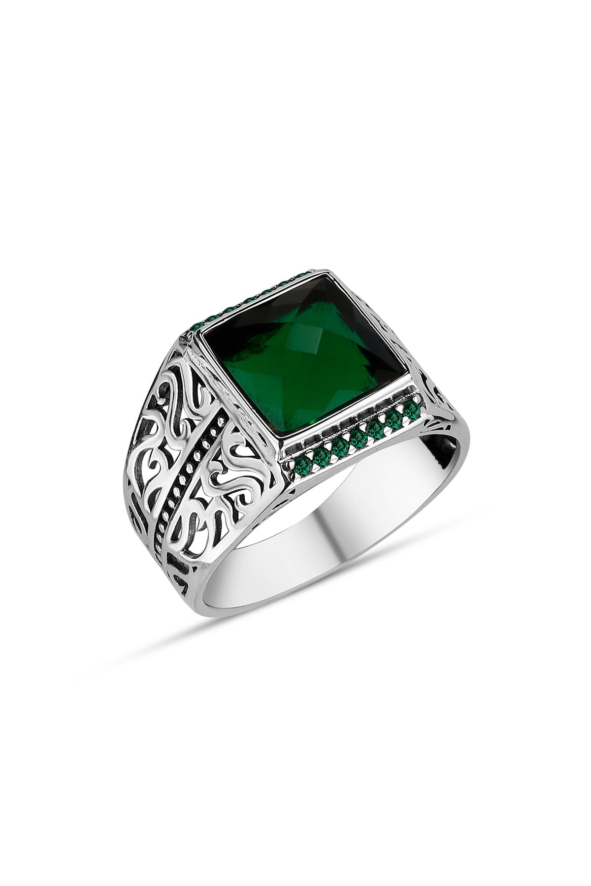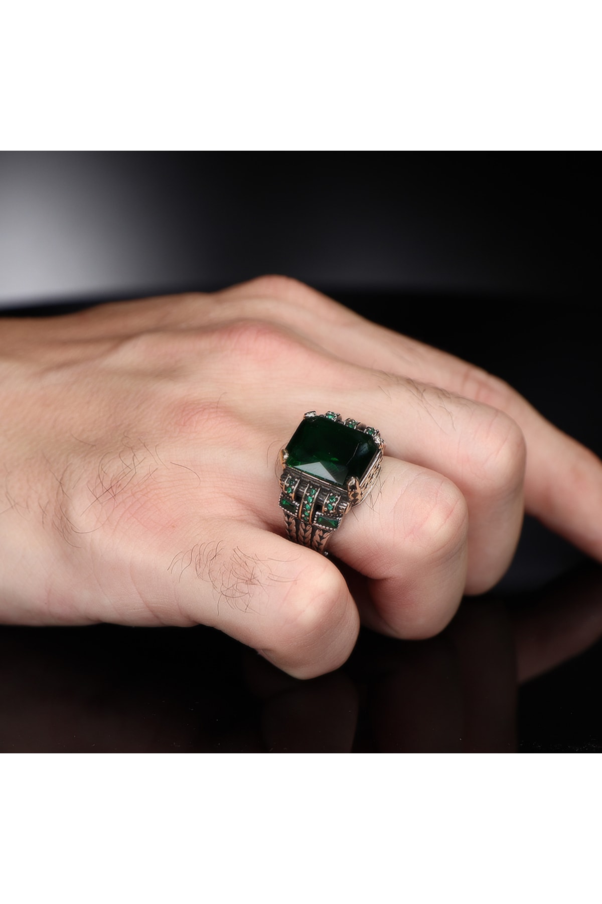 925 Ayar Gümüş Özel Tasarım Yeşil Taşlı Siyah Şeritli Erkek Yüzük 925 Ayar Gümüş Özel Tasarım Yeşil Taşlı Siyah Şeritli Erkek Yüzük 392550 S