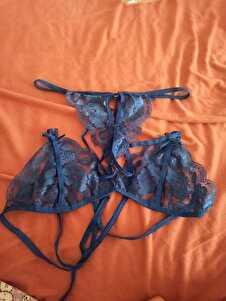 Kadın Mavi Dantel Sütyen Ve Külot Takım Kadın Mavi Dantel Sütyen Ve Külot Takım IMD0001 XL