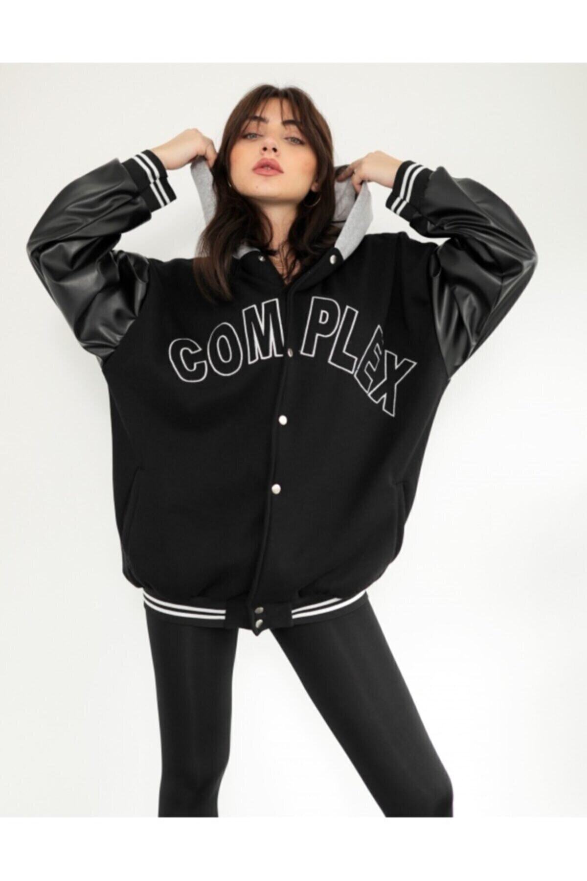 Unisex Oversize Siyah Complex Kol Deri Kolej Ceket Unisex Oversize Siyah Complex Kol Deri Kolej Ceket COMPLEX1 Standart