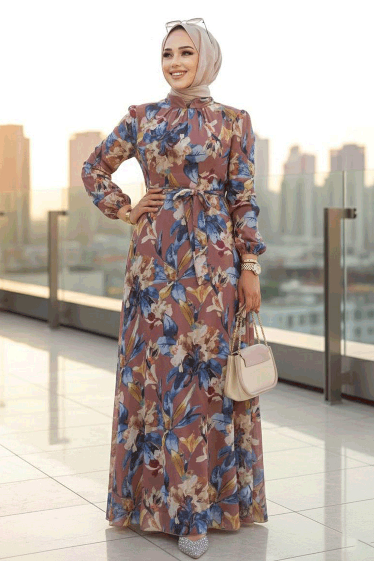 Çiçek Desenli Ekru Tesettür Elbise 279019E Çiçek Desenli Ekru Tesettür Elbise 279019E ARM-279019 56