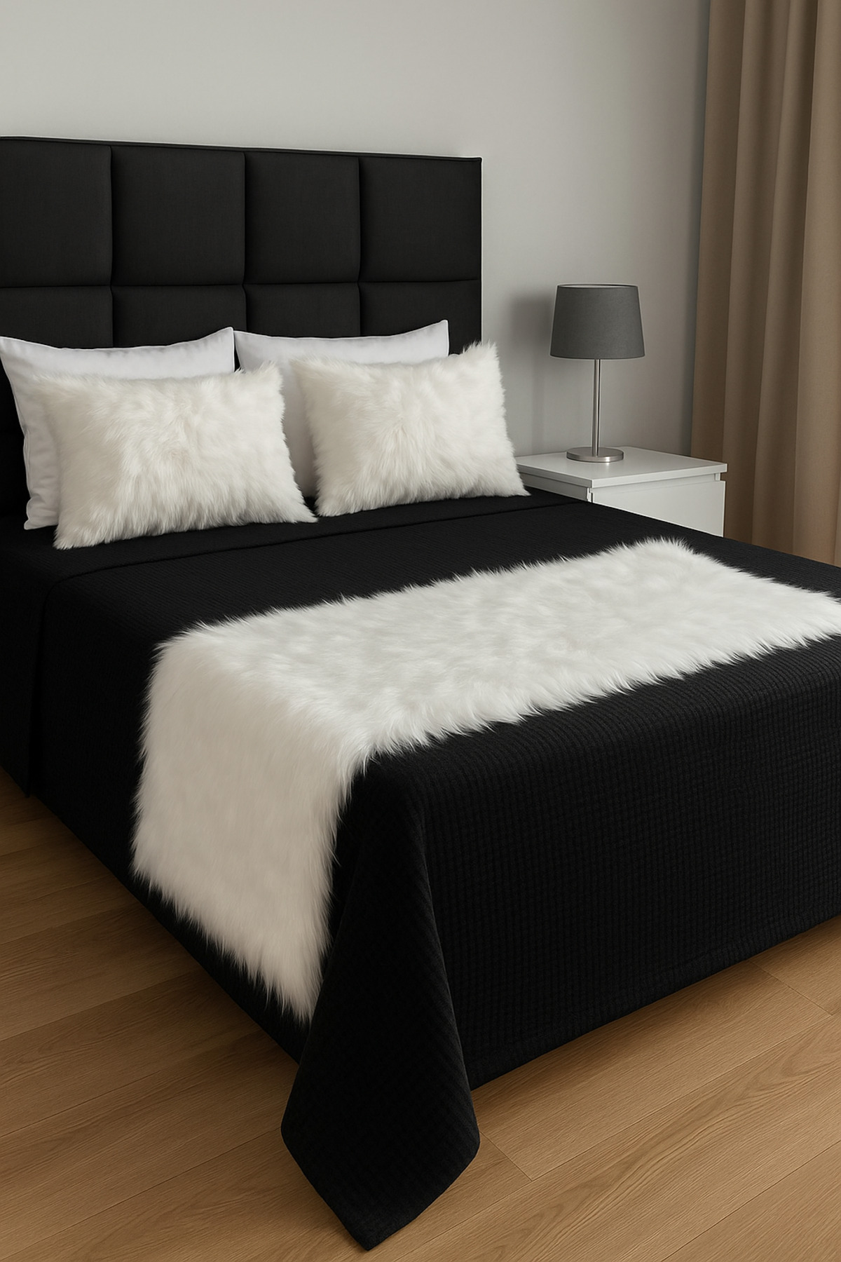 Yatak Runner & Iç Dolgulu Kırlent Seti Çift Kişilik Biyeli Gri/siyah Otel Serisi Yatak Runner & Iç Dolgulu Kırlent Seti Çift Kişilik Biyeli Gri/siyah Otel Serisi RTMR2051R تک سایز