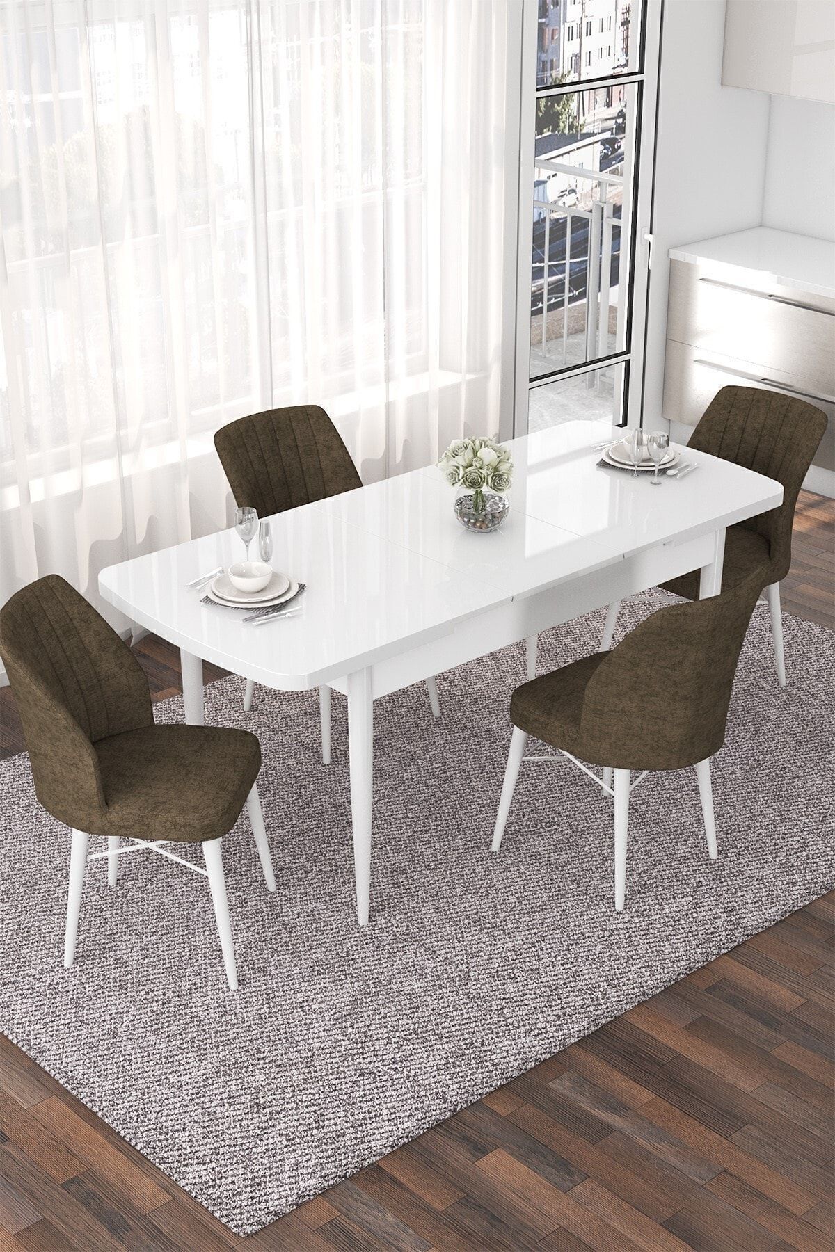 Nef Serisi 70x114 Açılabilir Mdf Beyaz Masa 4 Kahve Sandalye Mutfak Masası Takımı Nef Serisi 70x114 Açılabilir Mdf Beyaz Masa 4 Kahve Sandalye Mutfak Masası Takımı PRA-5296235-843873 تک سایز
