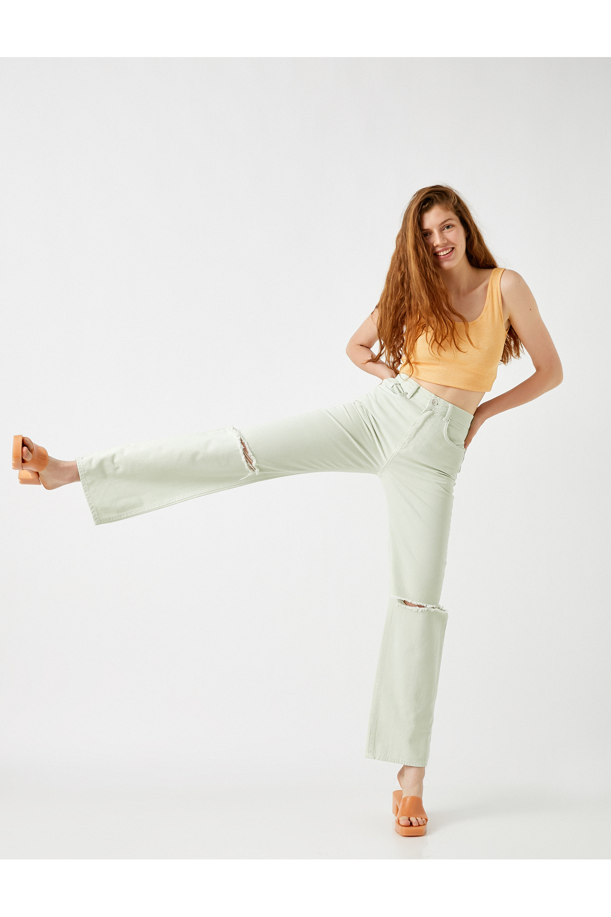 Yüksek Bel Dizi Yırtık Kot Pantolon Yüksek Bel Dizi Yırtık Kot Pantolon 2YAK47301DD 27-32