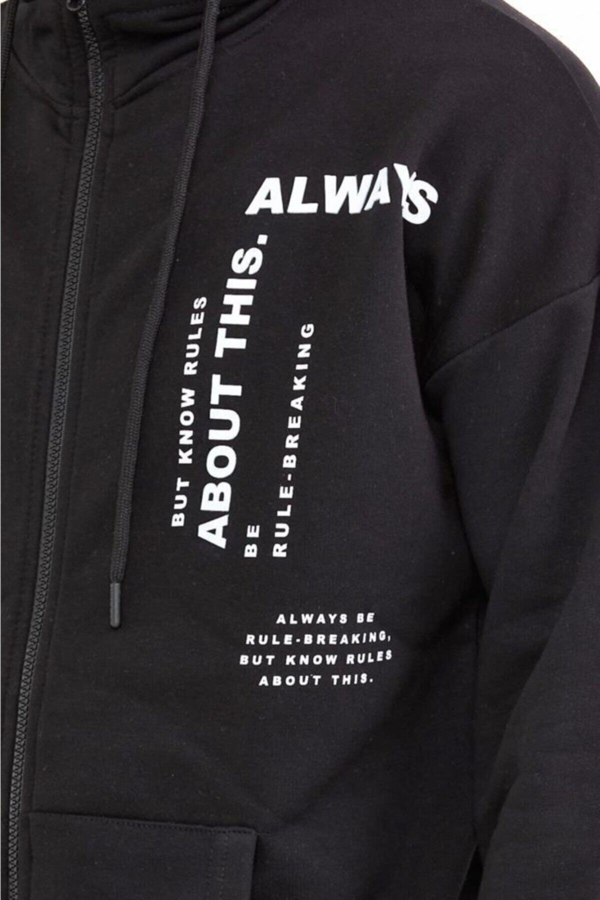 Rule Gofre Baskılı Fermuarlı Siyah Sweatshırt, Zip Hoodie Rule Gofre Baskılı Fermuarlı Siyah Sweatshırt, Zip Hoodie TYC00326330768 XL