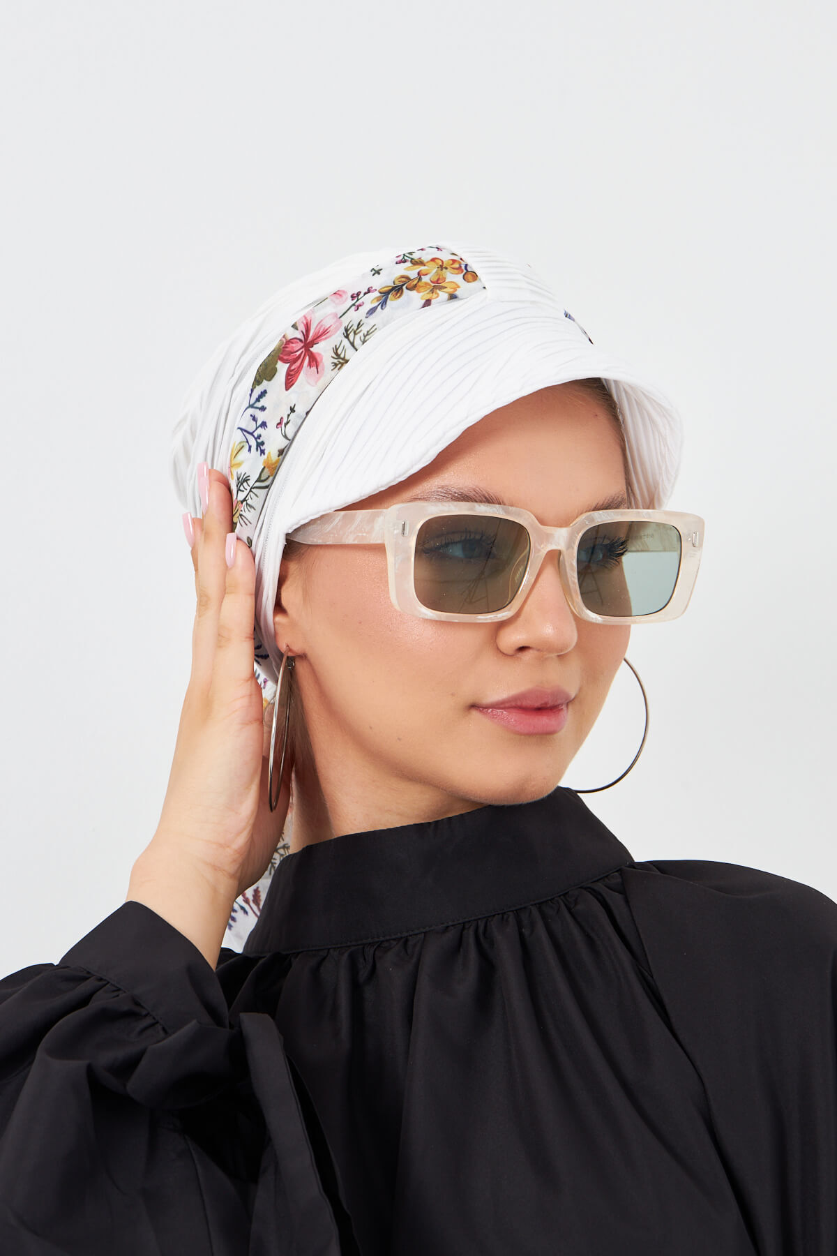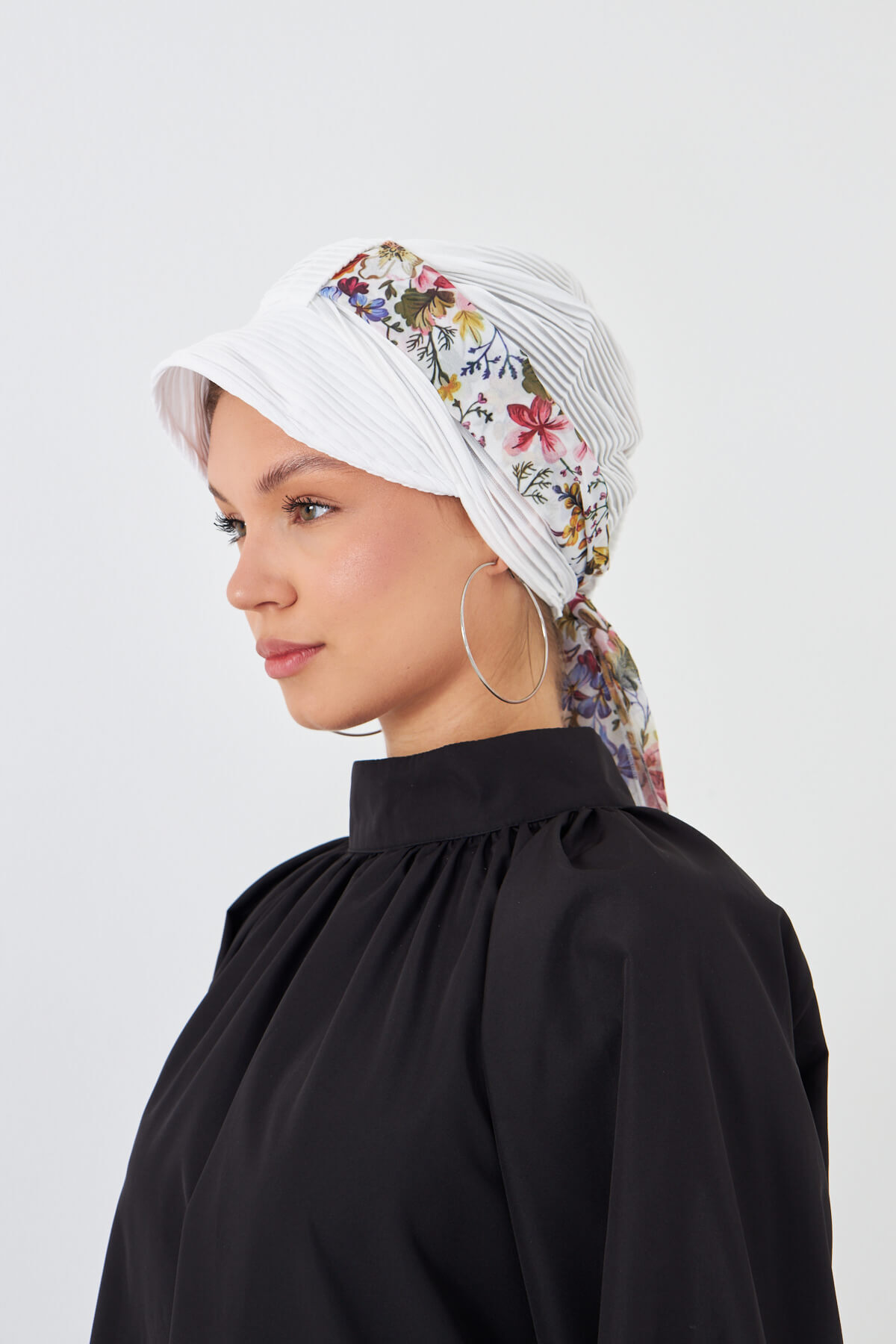 Krem Şapkalı Tesettür Bone Kesik Elyaf Desenli Şifon Kemerli 1902_40 Krem Şapkalı Tesettür Bone Kesik Elyaf Desenli Şifon Kemerli 1902_40 TYC00326503185 تک سایز