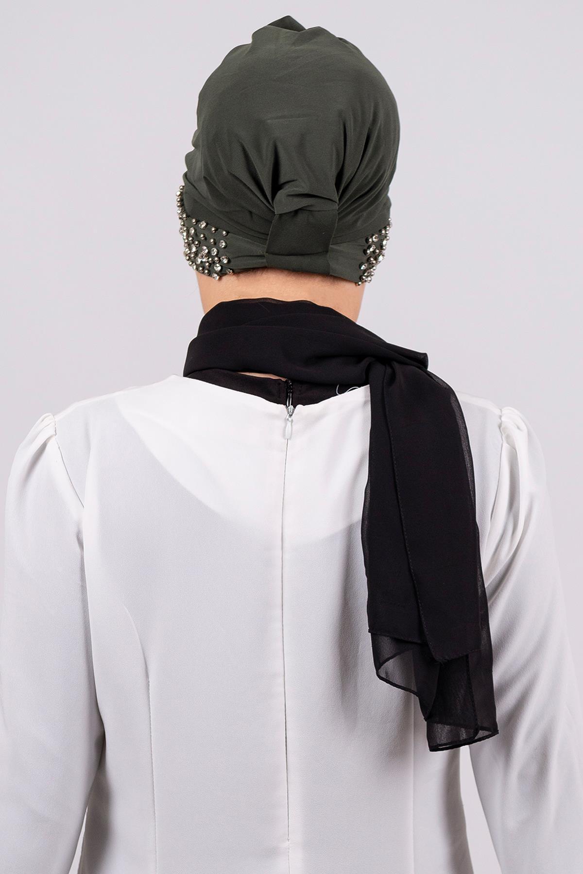 Haki Pratik Hazır Geçmeli Tesettür Bone Sandy Kumaş Taşlı 1456_09 Haki Pratik Hazır Geçmeli Tesettür Bone Sandy Kumaş Taşlı 1456_09 TYC00326503030 تک سایز