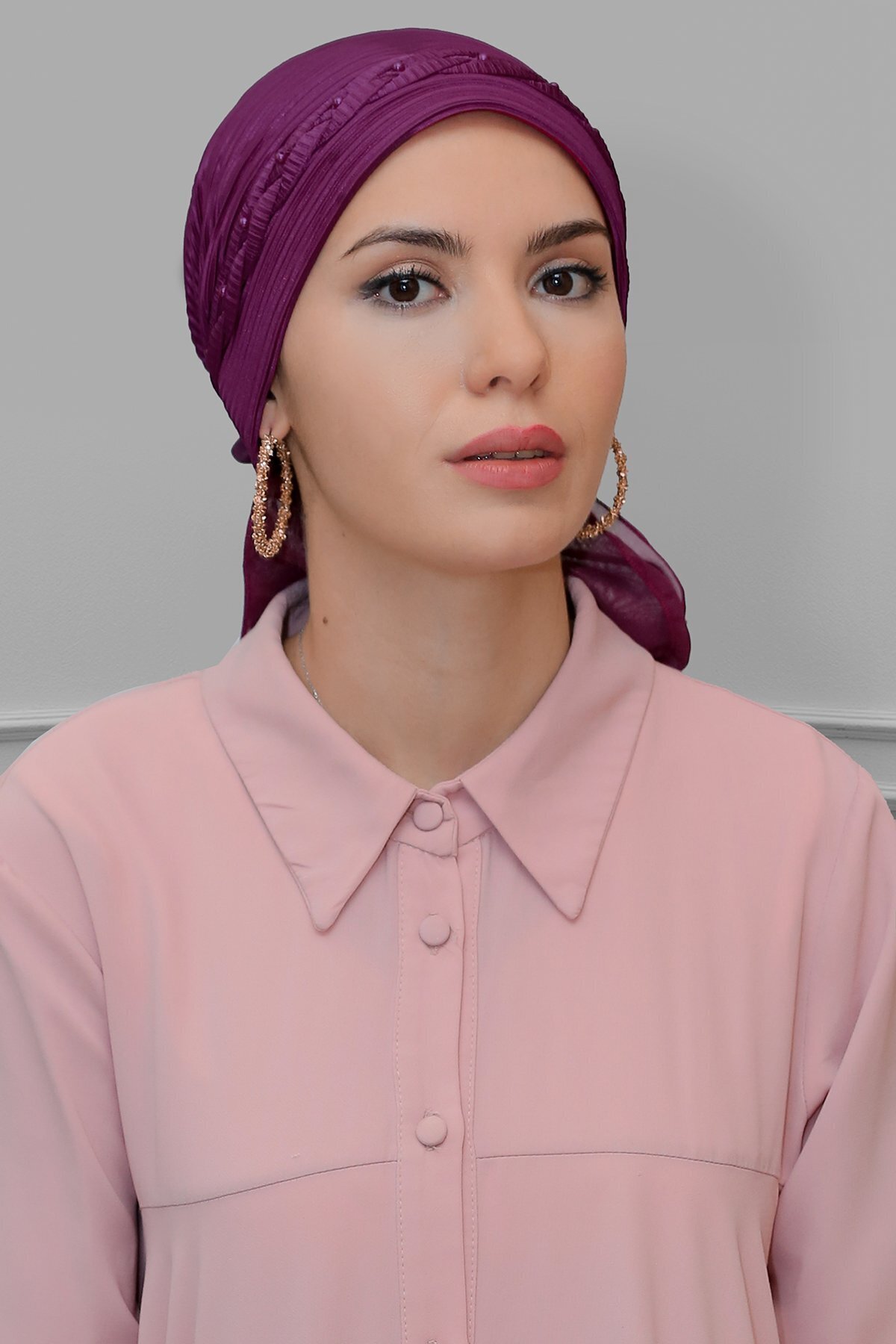 Mürdüm Pratik Hazır Geçmeli Tesettür Bone Fukuro Piliseli Örgülü Güllü 1823_07 Mürdüm Pratik Hazır Geçmeli Tesettür Bone Fukuro Piliseli Örgülü Güllü 1823_07 TYC00326504112 تک سایز