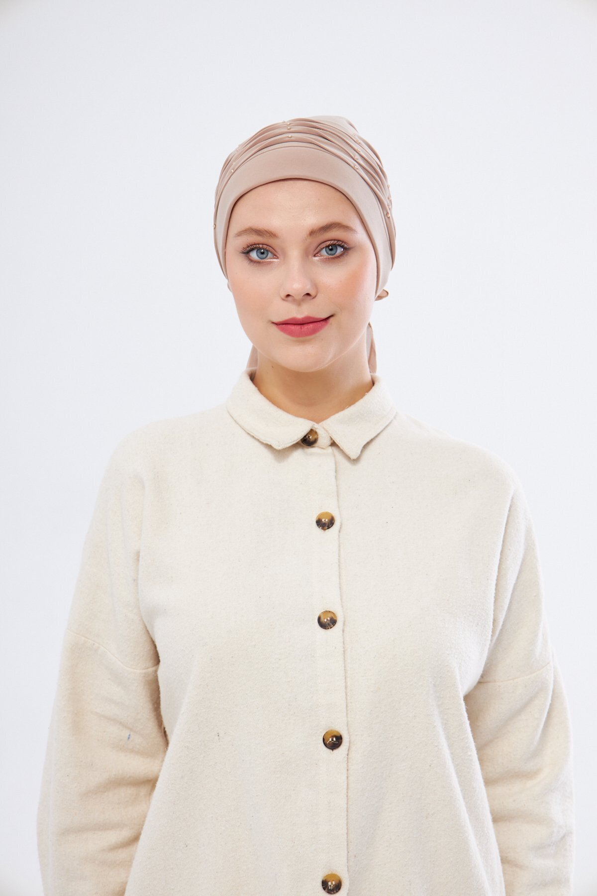 Bej Pratik Hazır Geçmeli Tesettür Bone Sandy Kumaş İncili Pileli Nervürlü Güllü 1805_12 Bej Pratik Hazır Geçmeli Tesettür Bone Sandy Kumaş İncili Pileli Nervürlü Güllü 1805_12 TYC00326506509 تک سایز