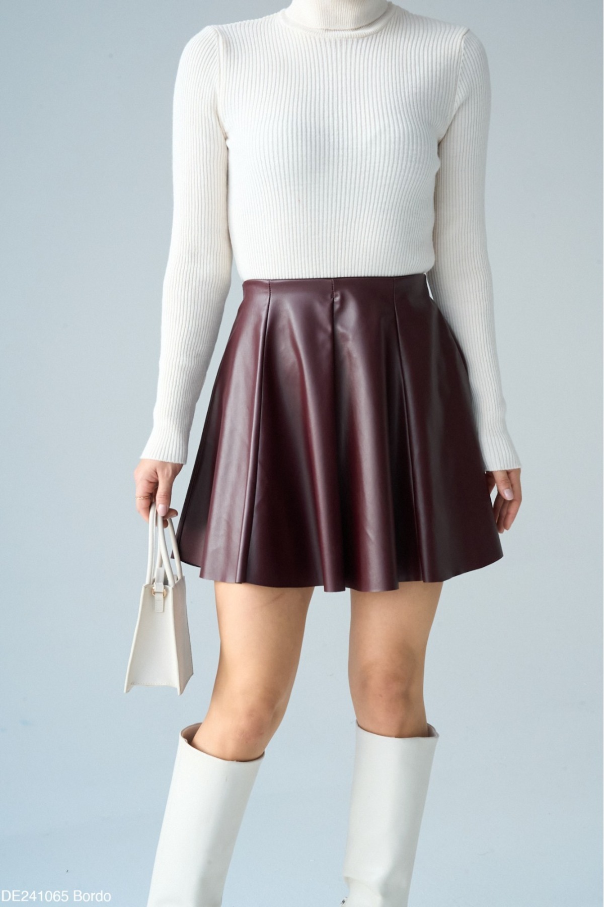 Kadın Bordo Kloş Suni Deri Etek Kadın Bordo Kloş Suni Deri Etek KKO-00-1225 XL