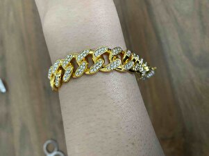 12 mm. 17,5 cm. Kalın Taşlı Gold Alloy Kadın Bileklik er02sr 12 mm. 17,5 cm. Kalın Taşlı Gold Alloy Kadın Bileklik er02sr تک سایز