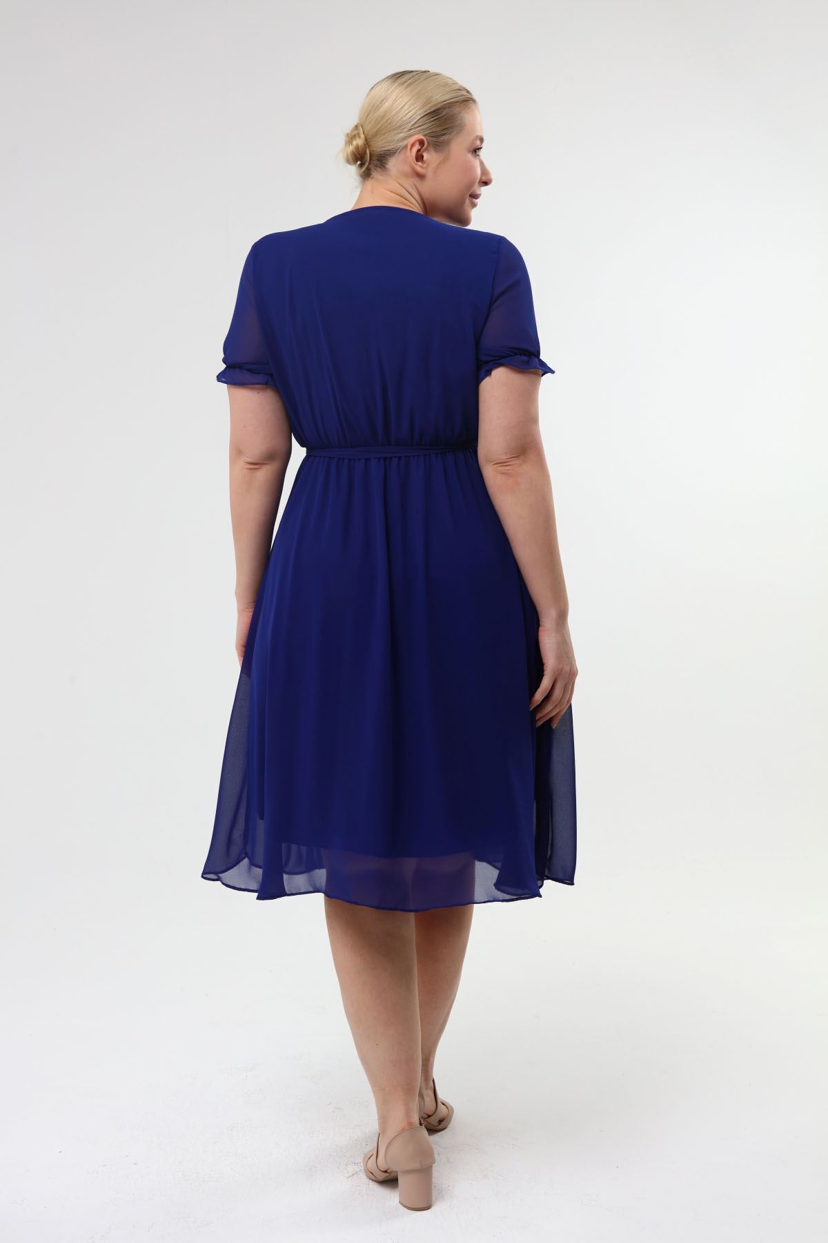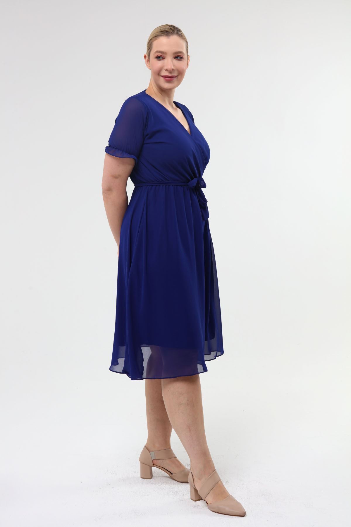 Kruvaze Yaka Büyük Beden Şifon Saks Elbise 26B-1967 Kruvaze Yaka Büyük Beden Şifon Saks Elbise 26B-1967 17D-1574 52-54