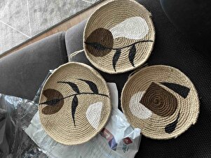 Bohem Kahverengi Beyaz Siyah Renk Üçlü Afrikan Hasır Duvar Tabağı. Bohem Kahverengi Beyaz Siyah Renk Üçlü Afrikan Hasır Duvar Tabağı. NA41 تک سایز