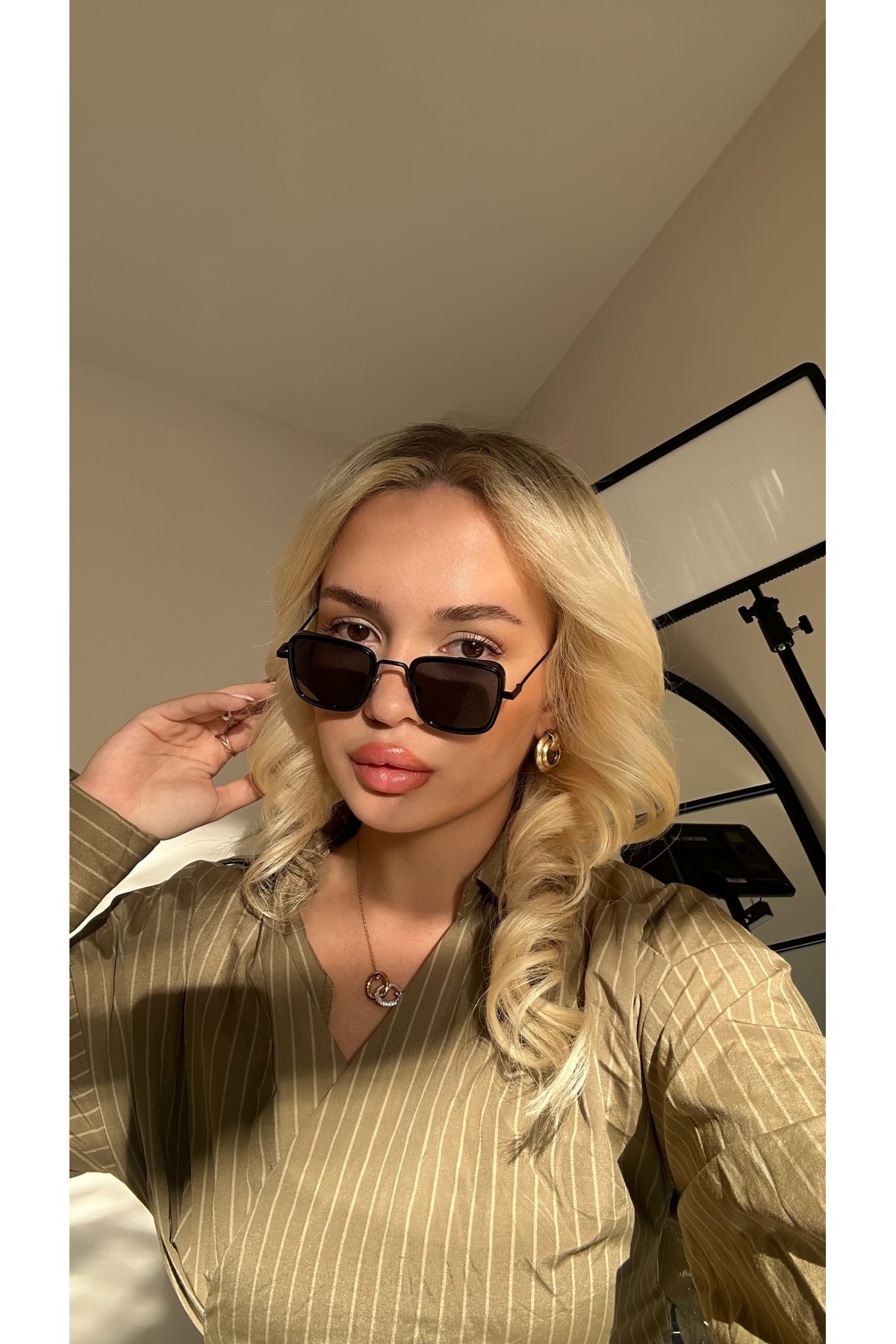 Kadın Güneş Gözlüğü Dikdörtgen Tasarım Ultra Dayanalıklı Siyah Metal Çerçeve Siyah Cam Kadın Güneş Gözlüğü Dikdörtgen Tasarım Ultra Dayanalıklı Siyah Metal Çerçeve Siyah Cam YW-2023A تک سایز