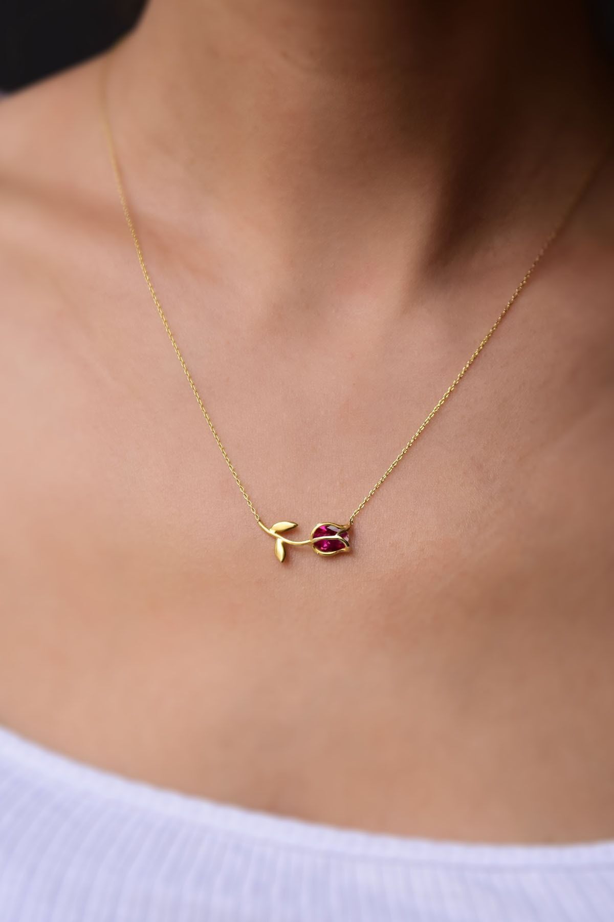 925 Ayar Gümüş Gold Kaplama Fuşya Taşlı Lale Kolye 925 Ayar Gümüş Gold Kaplama Fuşya Taşlı Lale Kolye UVPTS100195 تک سایز