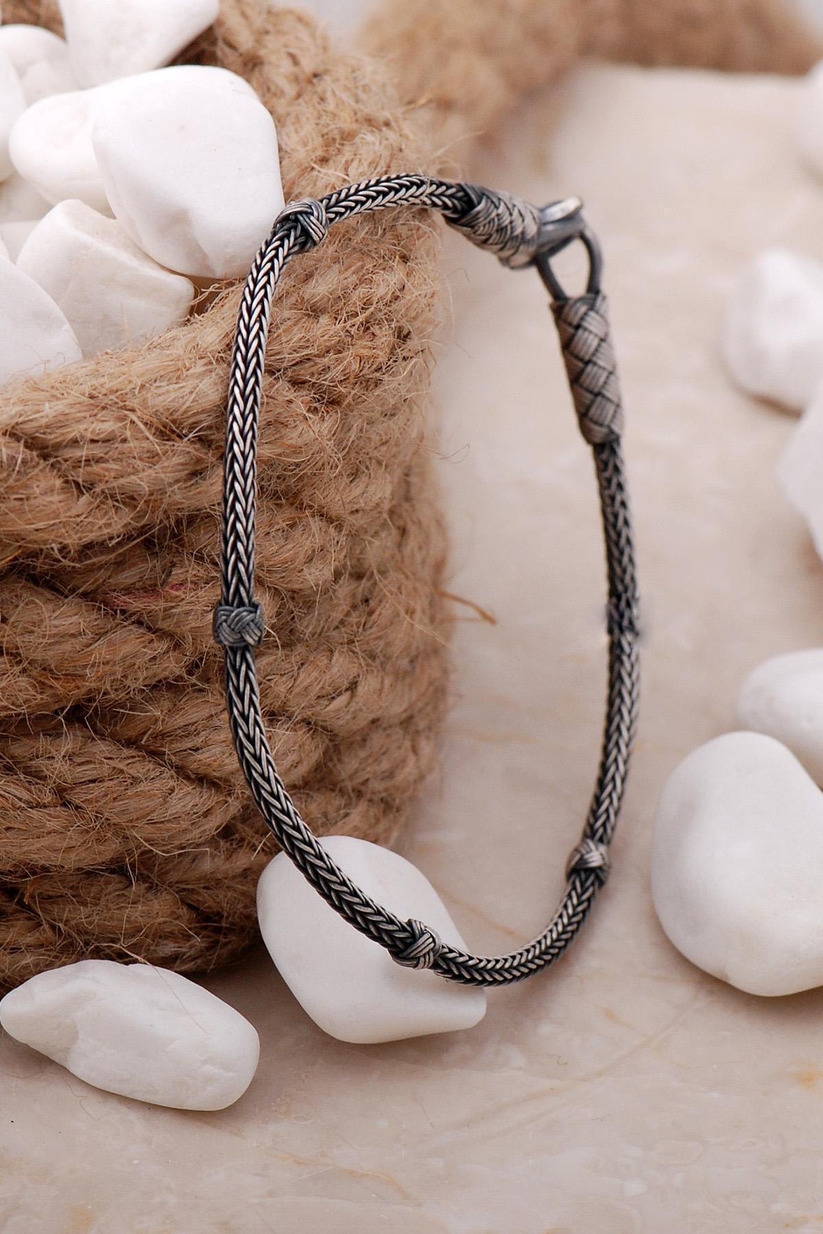 Kazaziye Işlemeli Sarma Elişi Gümüş Erkek Bileklik 3821 Kazaziye Işlemeli Sarma Elişi Gümüş Erkek Bileklik 3821 MBL3821 تک سایز