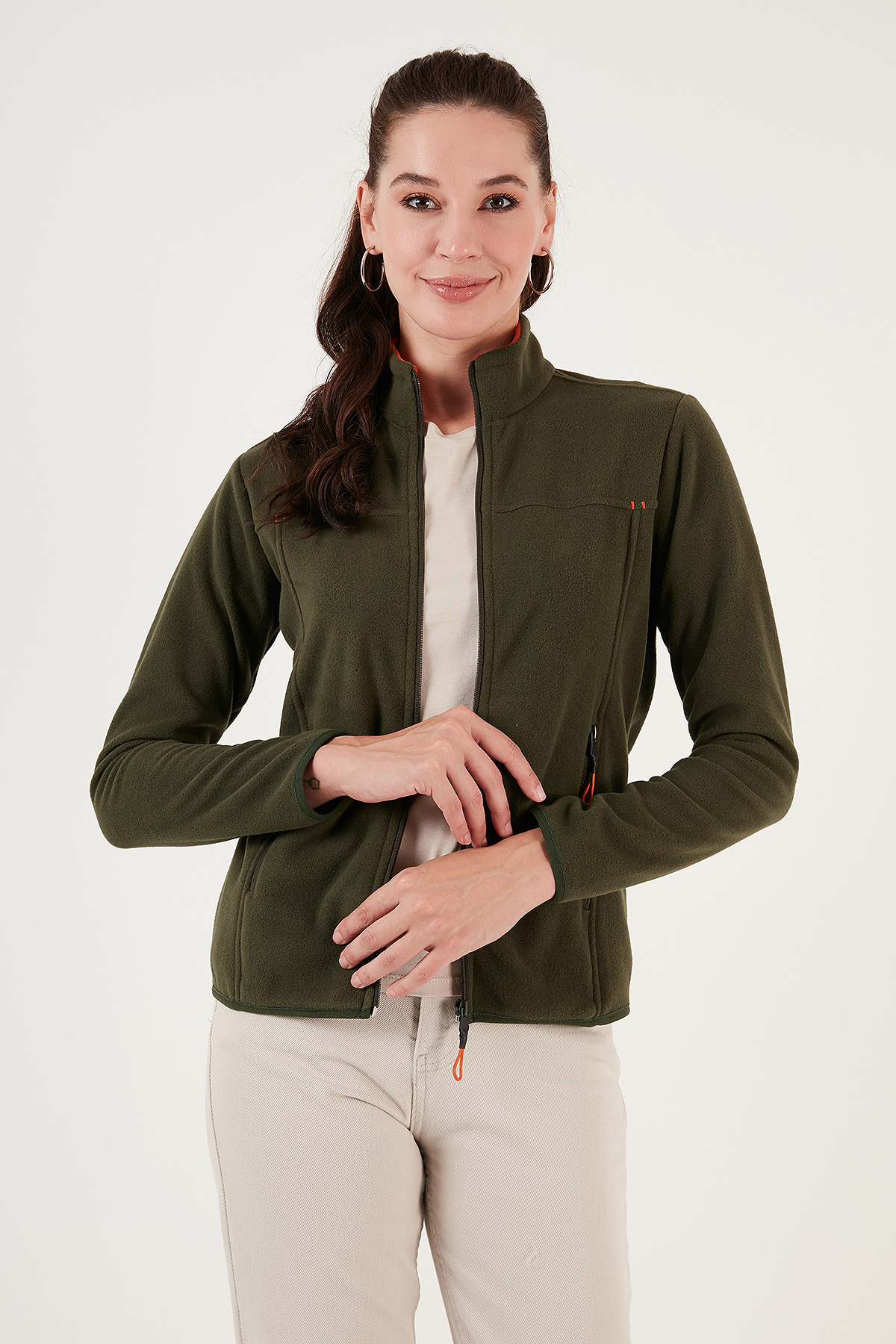 Dik Yaka Fermuarlı Cepli Polar Hırka Kadın 5907002 Dik Yaka Fermuarlı Cepli Polar Hırka Kadın 5907002 2XL