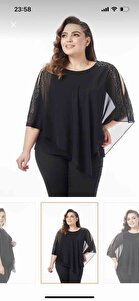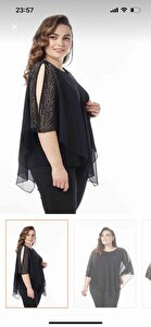 Siyah Omuz Taşlı Yırtmaçlı Şifon Pelerinli Büyük Beden Şık Bluz Siyah Omuz Taşlı Yırtmaçlı Şifon Pelerinli Büyük Beden Şık Bluz 2062 52